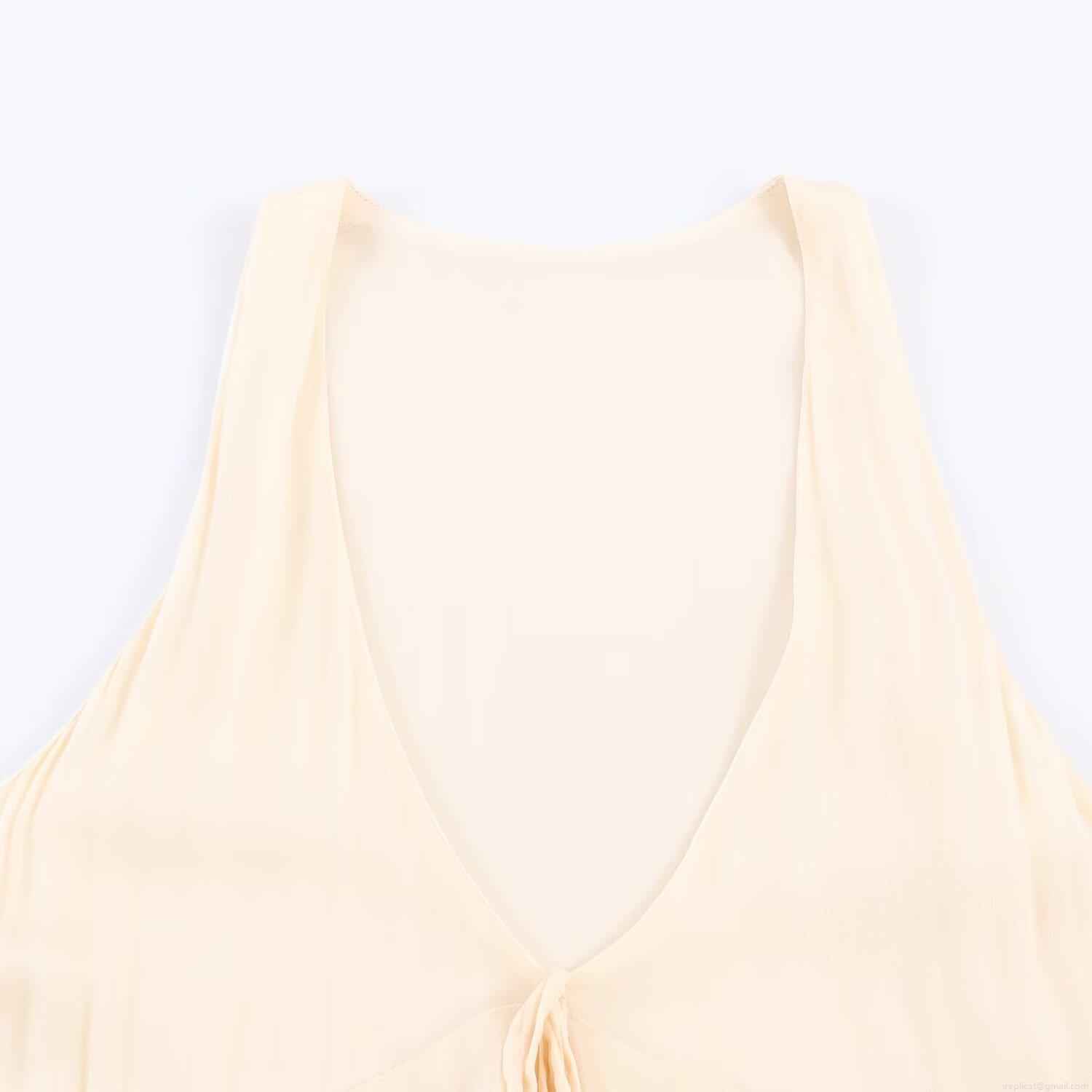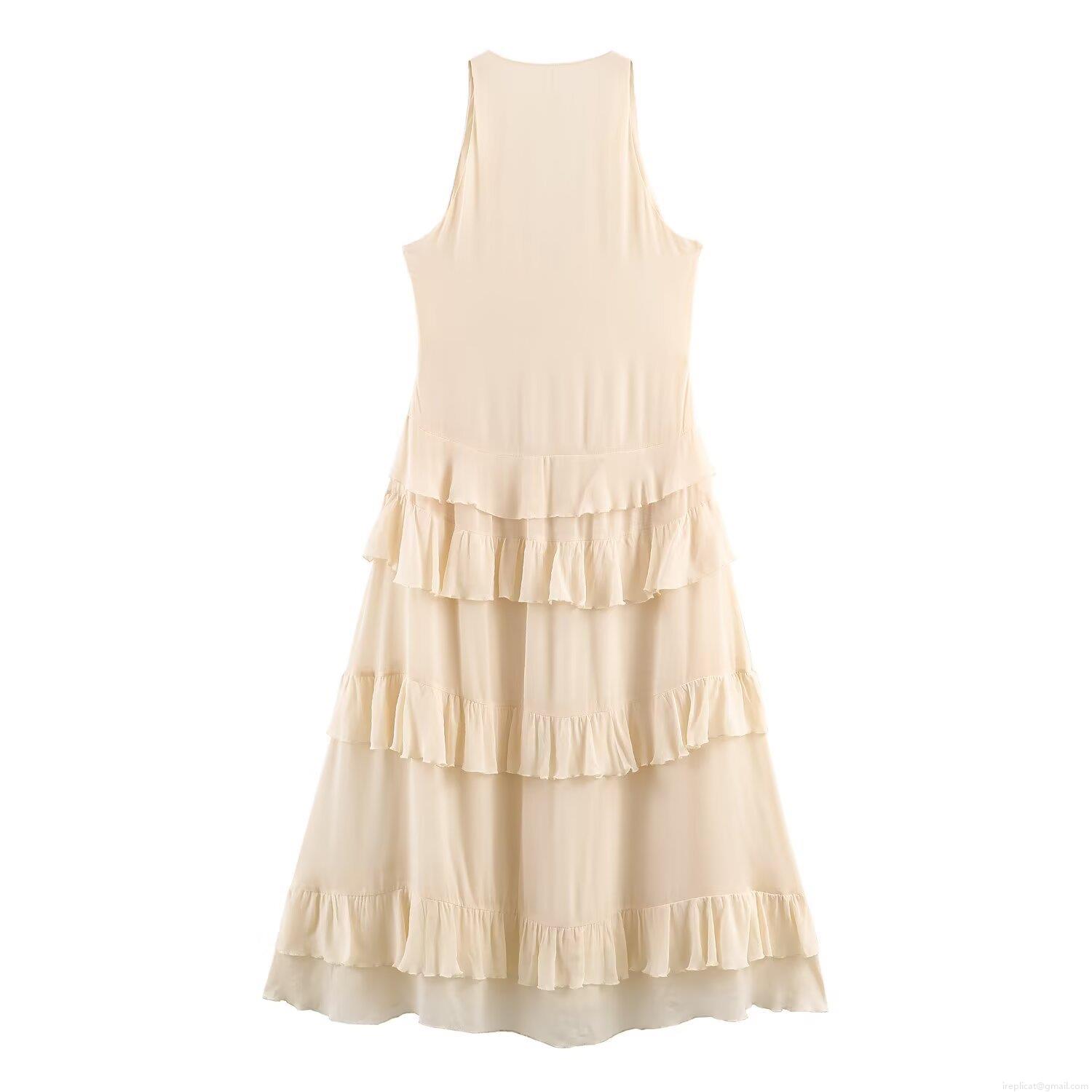 • Women's Elegant V-Neck Sleeveless Layered Ruffle Midi Dress Chiffon Polyester Solid Color Bohemian Summer Vacation Party Cake Dress For Ladies