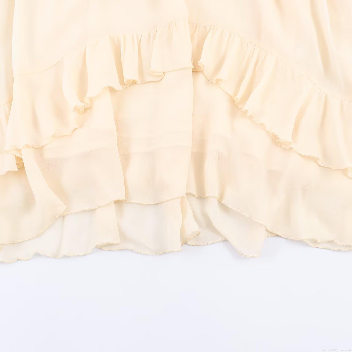 Solid Color, Ruffles, V-neck, Cake Skirt