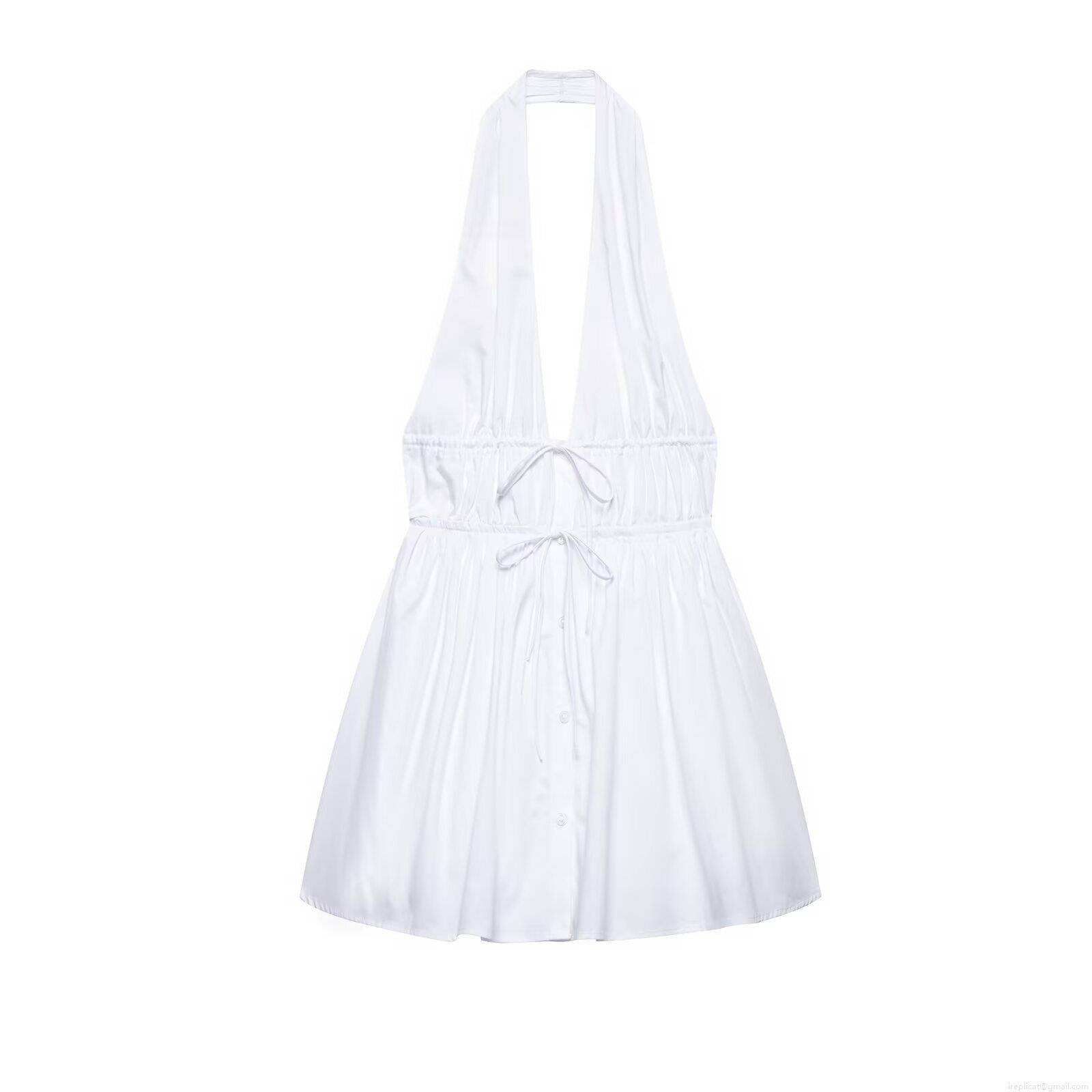 Solid Color, Neckband, Backless, Single-breasted, Deep V, Drawstring Pleats