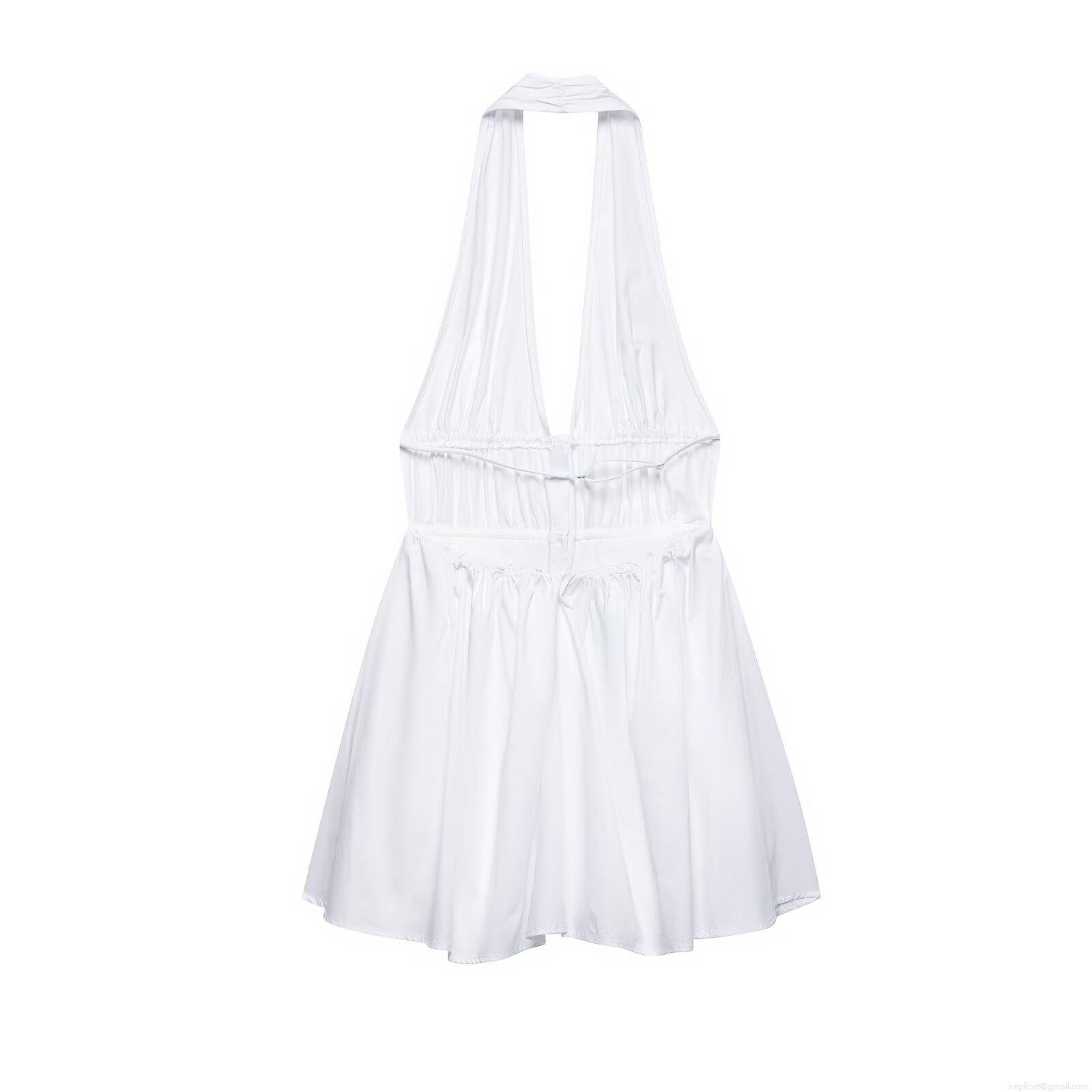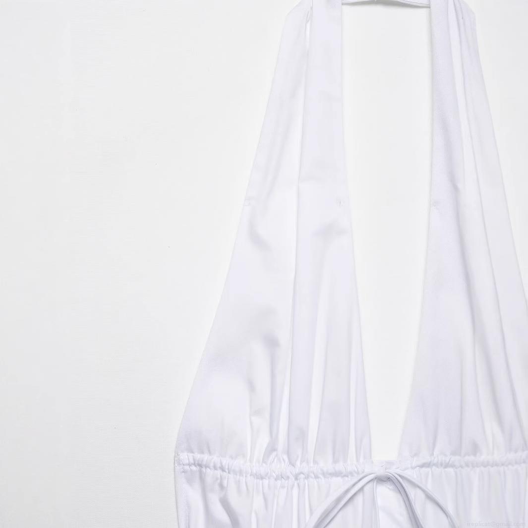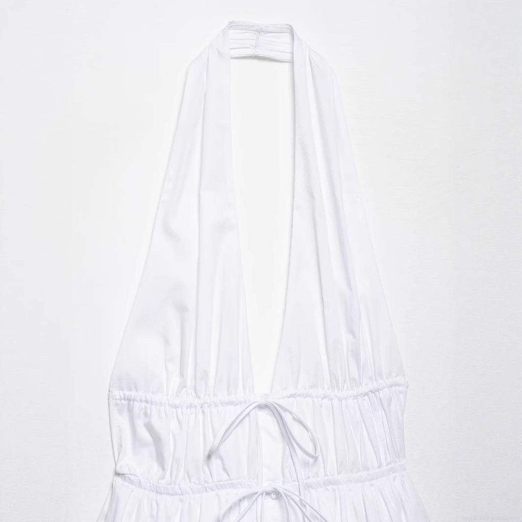 • Women's Elegant White Halter Neck Deep V Midi Dress Sexy Drawstring Ruched Waist Backless Single Breasted Solid Color Party Vacation Clubwear