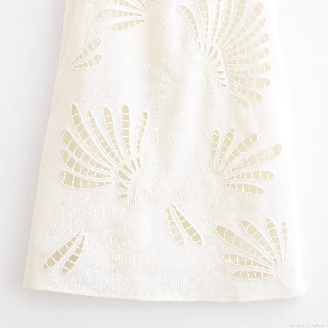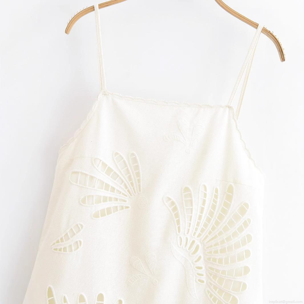 • Women's Elegant White Spaghetti Strap Midi Dress Sexy Eyelet Cutout Embroidery V-Neck Polyester Summer Dress For Beach Vacation Party