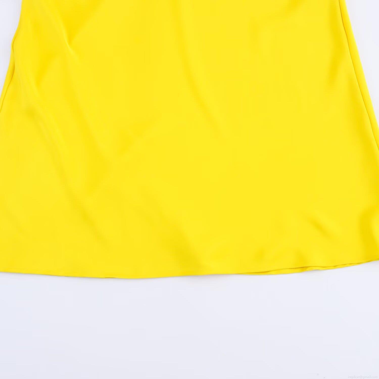 • Women's Elegant Yellow Satin Midi Dress White Lace Trim Spaghetti Strap V-Neck Patchwork Sleeveless Summer Party Club Dress For Ladies