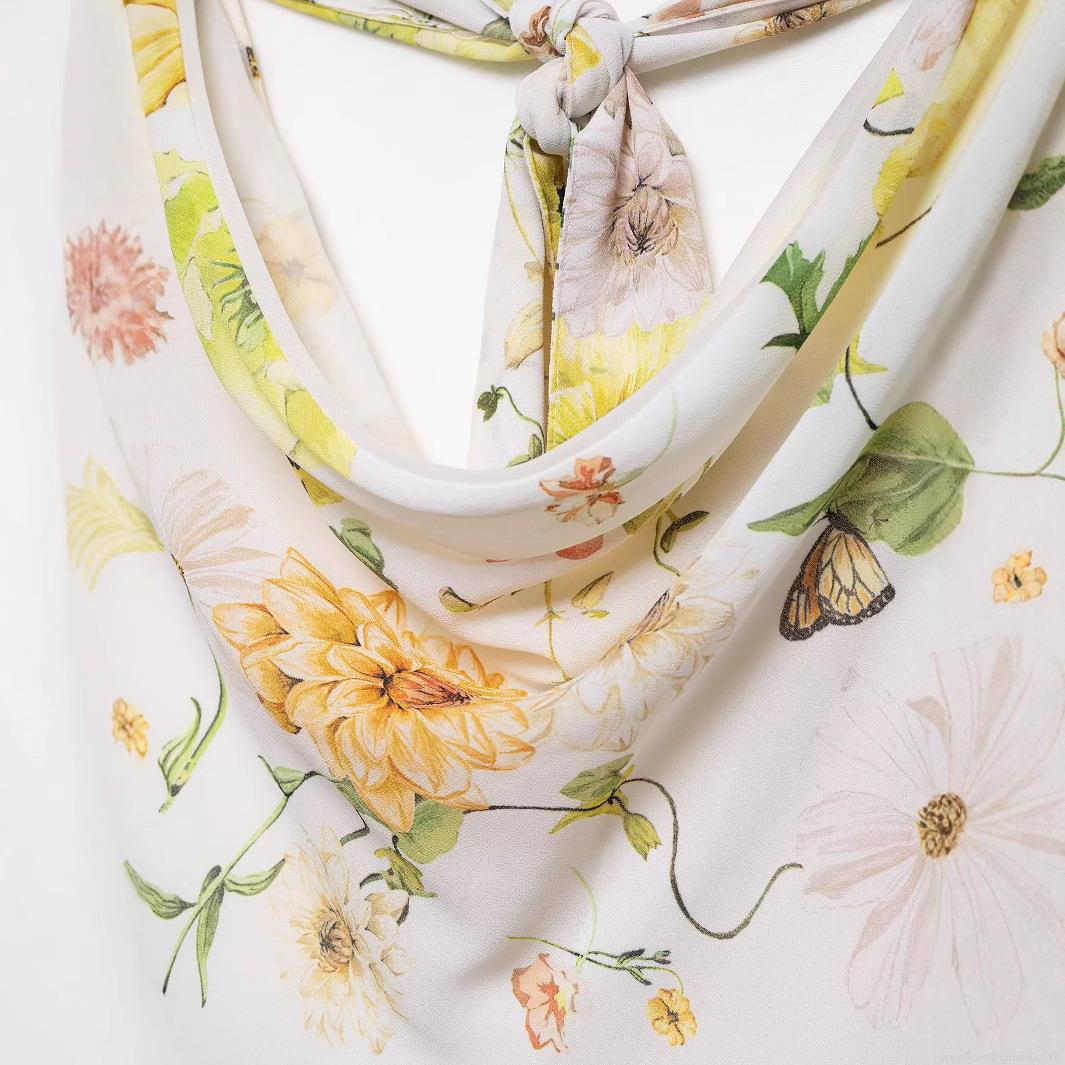 • Women's Floral Halter Cowl Neck Midi Dress Polyester Irregular Hem Backless Cross Tie Summer Vacation Chic Streetwear Party Dress