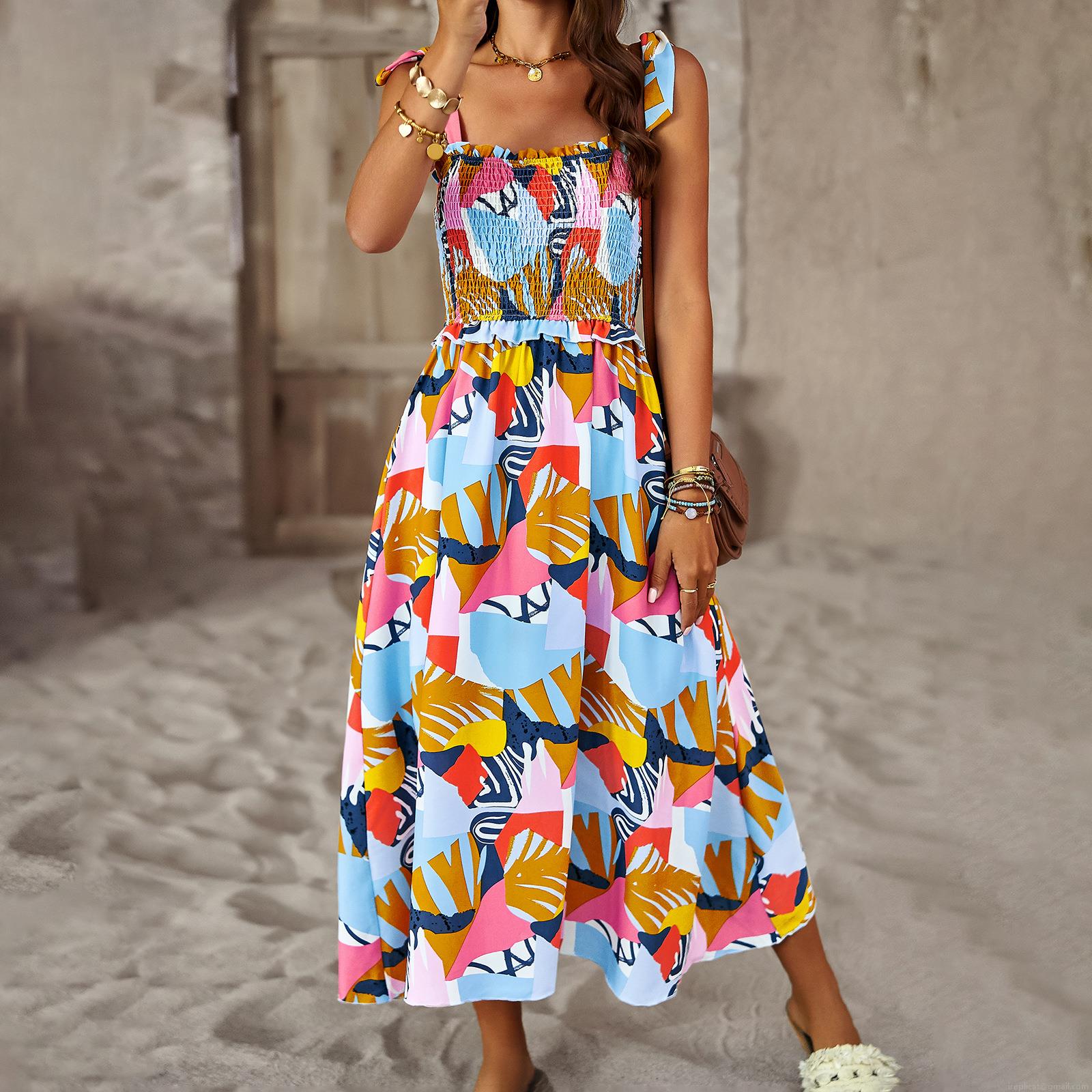 • Women's Floral Print Camisole Dress Summer Boho A-Line Midi Dress With Smocked Bodice And Adjustable Straps High Waist Casual Beach Vacation Sundress For Ladies