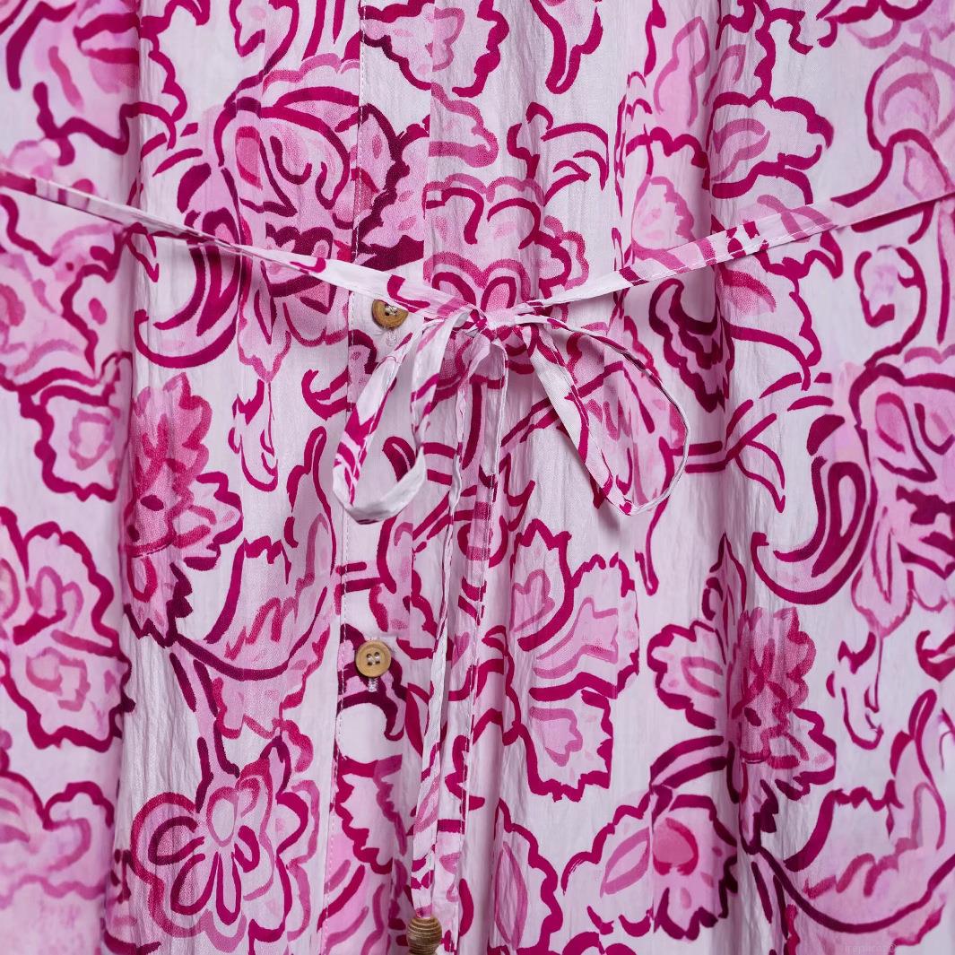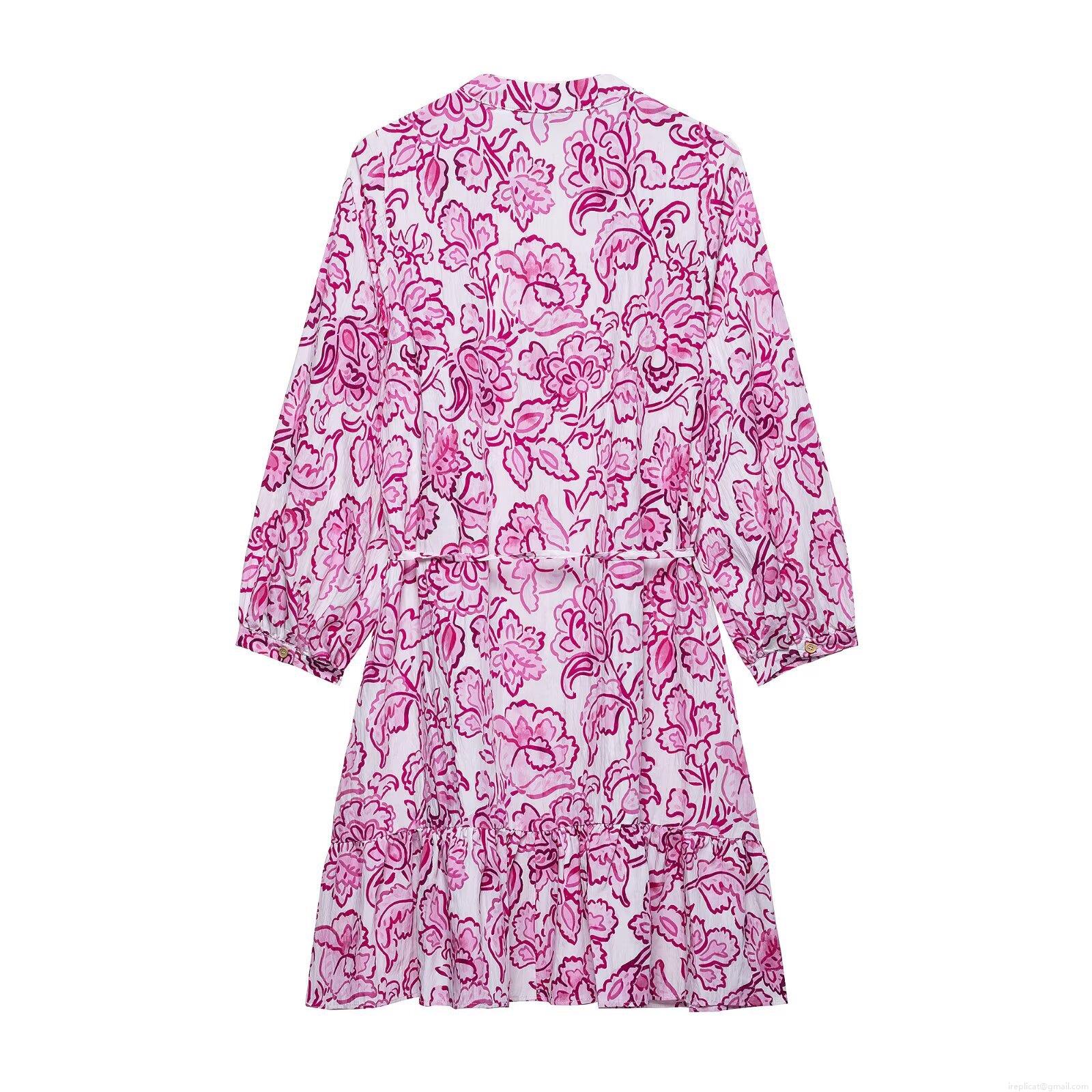 • Women's Floral Print Long Sleeve V-Neck Midi Dress With Waist Tie Ruffle Hem Boho Casual Streetwear A-Line Dress For Spring Summer