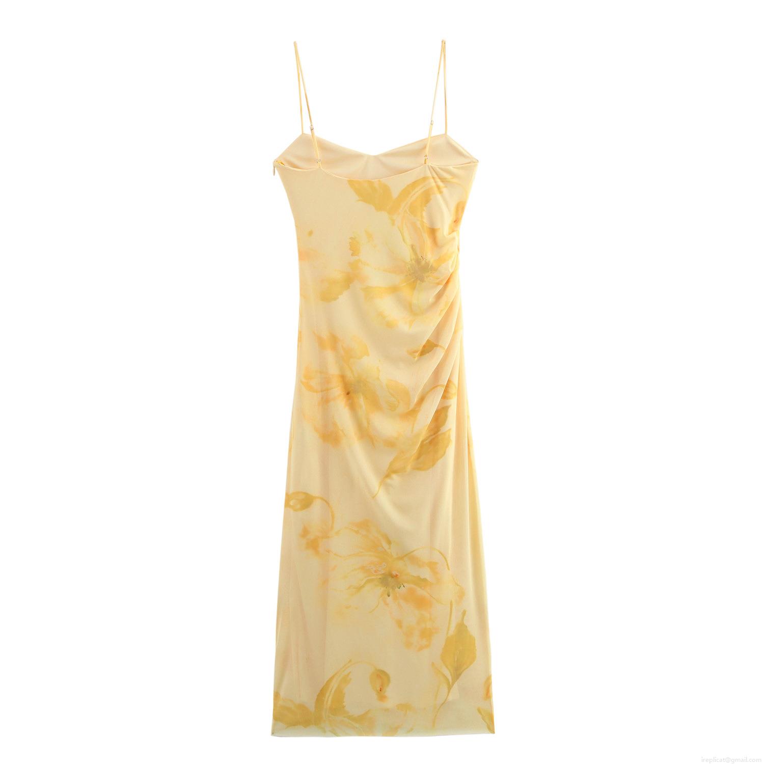 • Women's Floral Print Mesh Maxi Dress Sweet Pleated Slim Fit Spaghetti Strap Summer Long Dress Elegant Party Dating Dress