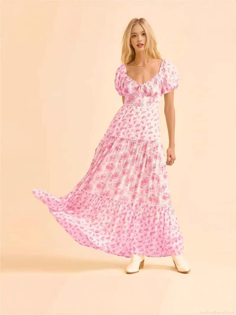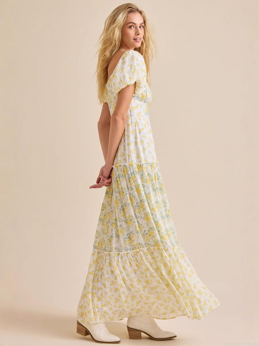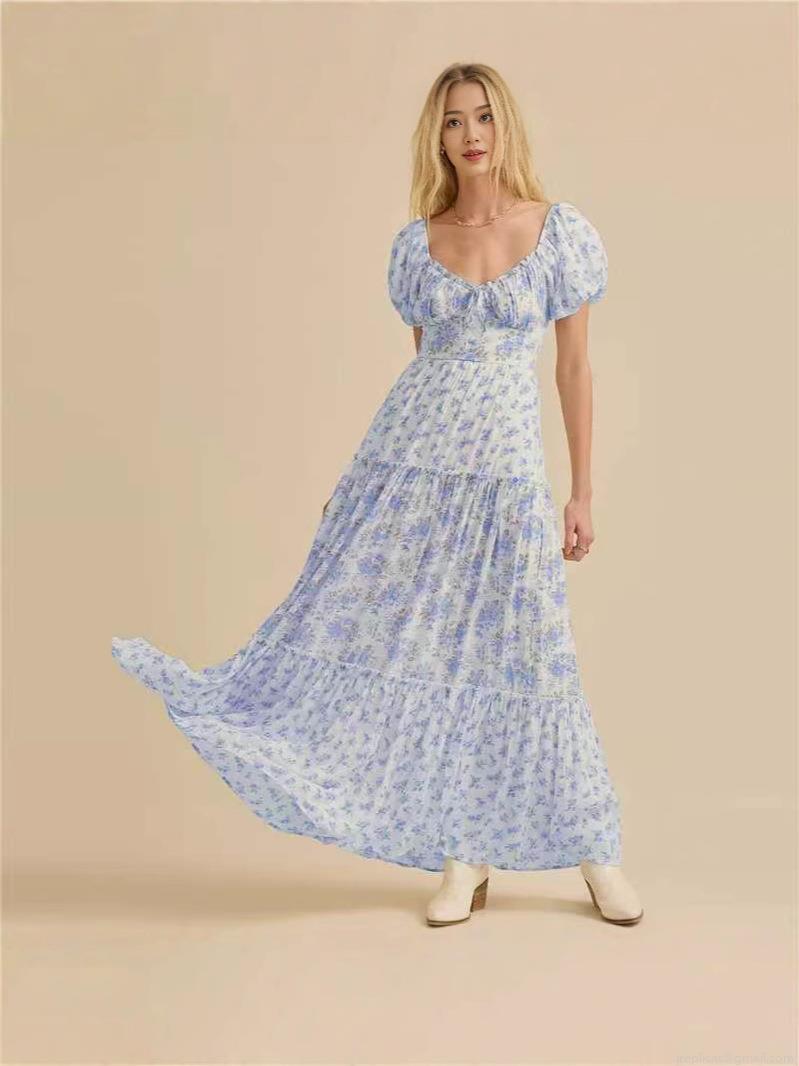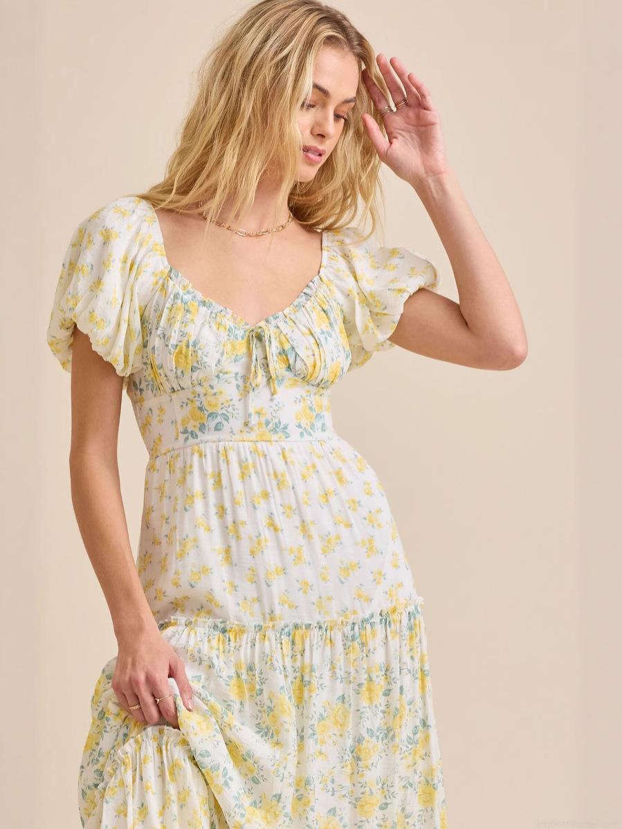 • Women's Floral Print Puff Sleeve Tiered Midi Dress Elegant Summer V-Neck Boho A-Line Party Dress for Women