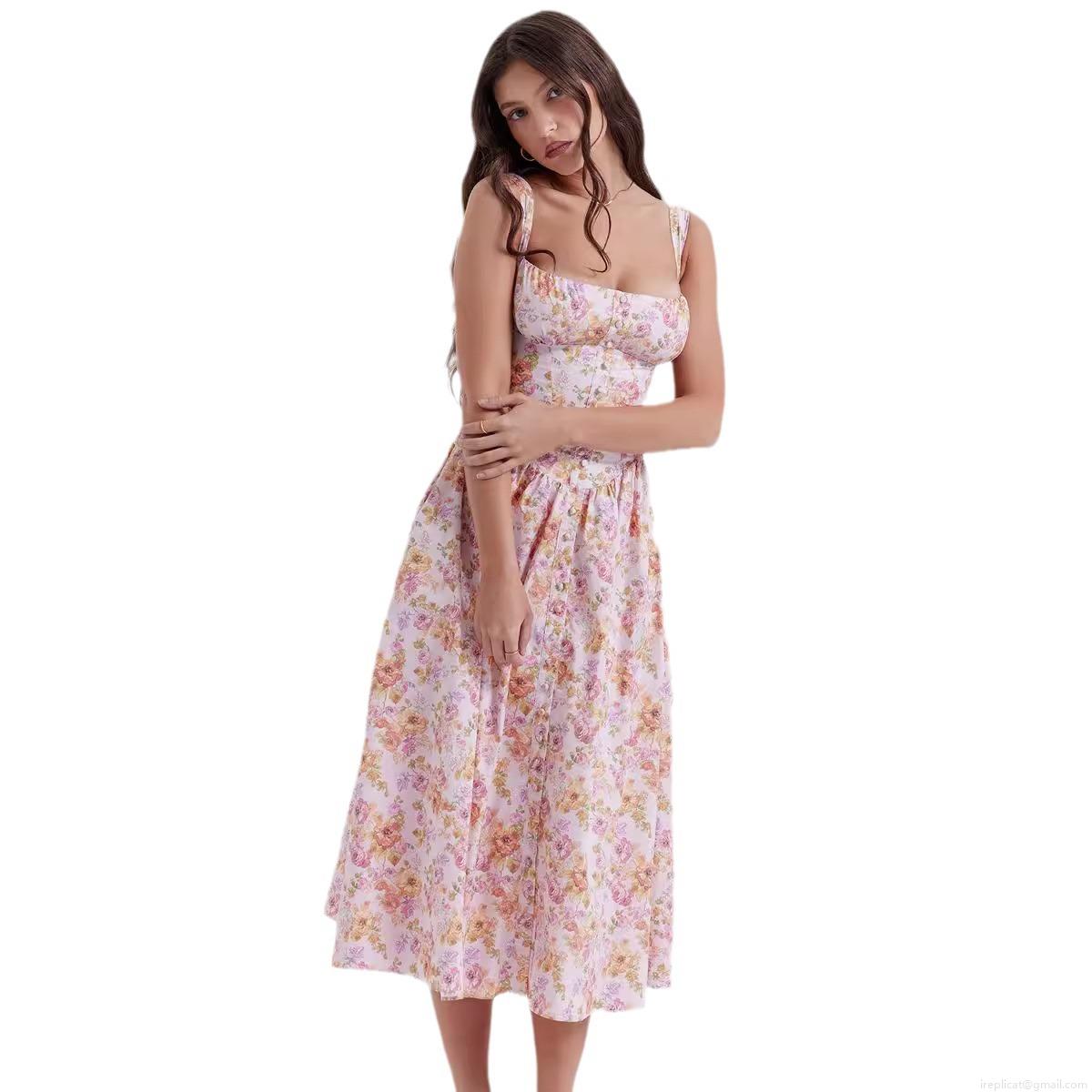 • Women's Floral Print Spaghetti Strap Midi Dress Sexy A-Line Vacation Sun Dress with Front Buttons and Pockets Polyester Spandex Summer Casual Outfits