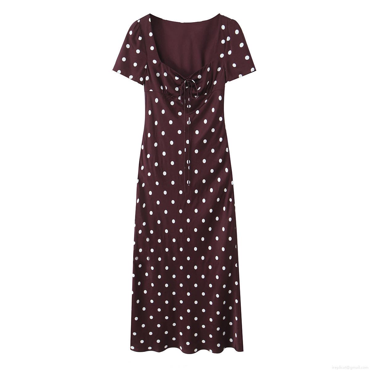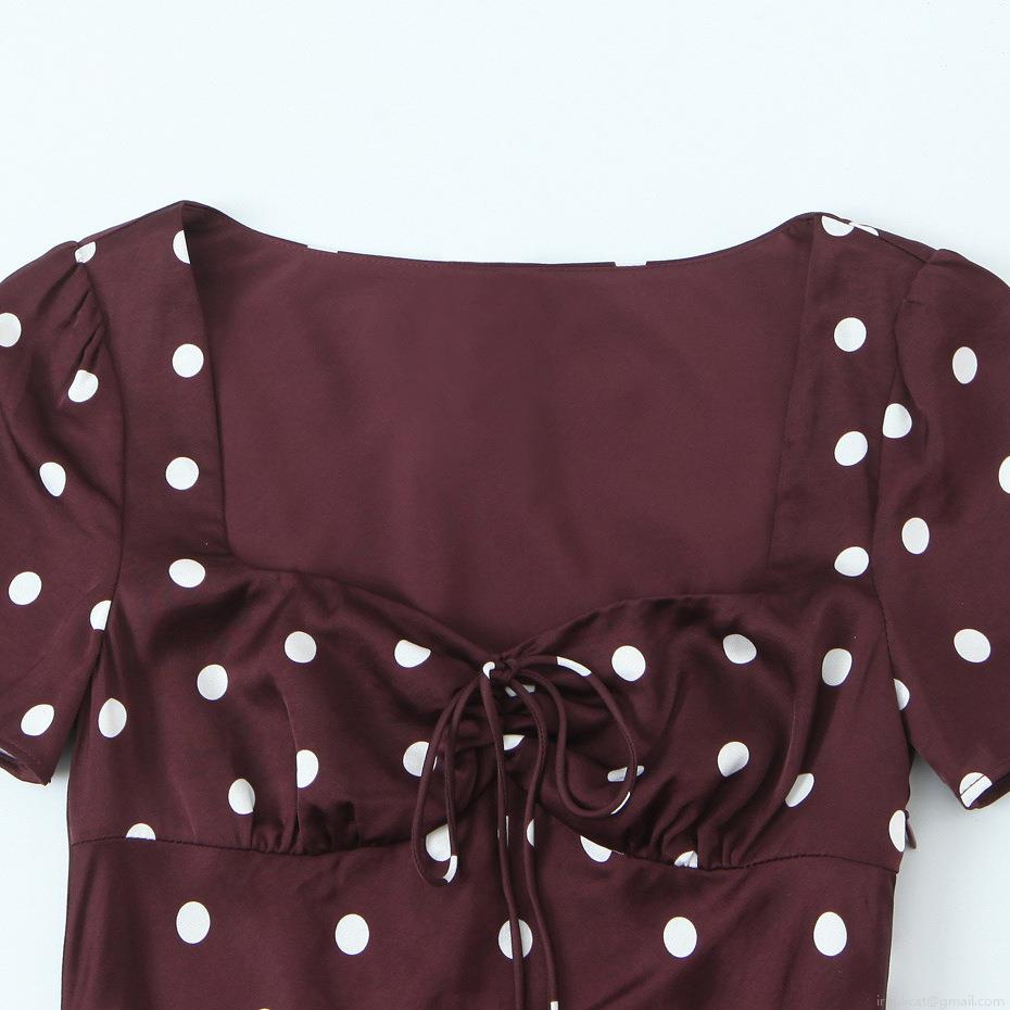 Polka Dots, Polka Dot Print, Square Collar, Lace-up Decoration