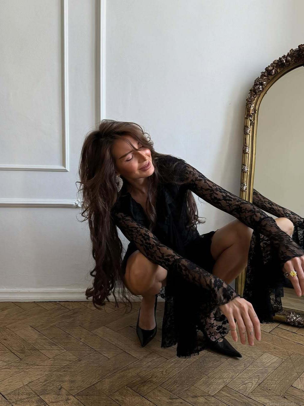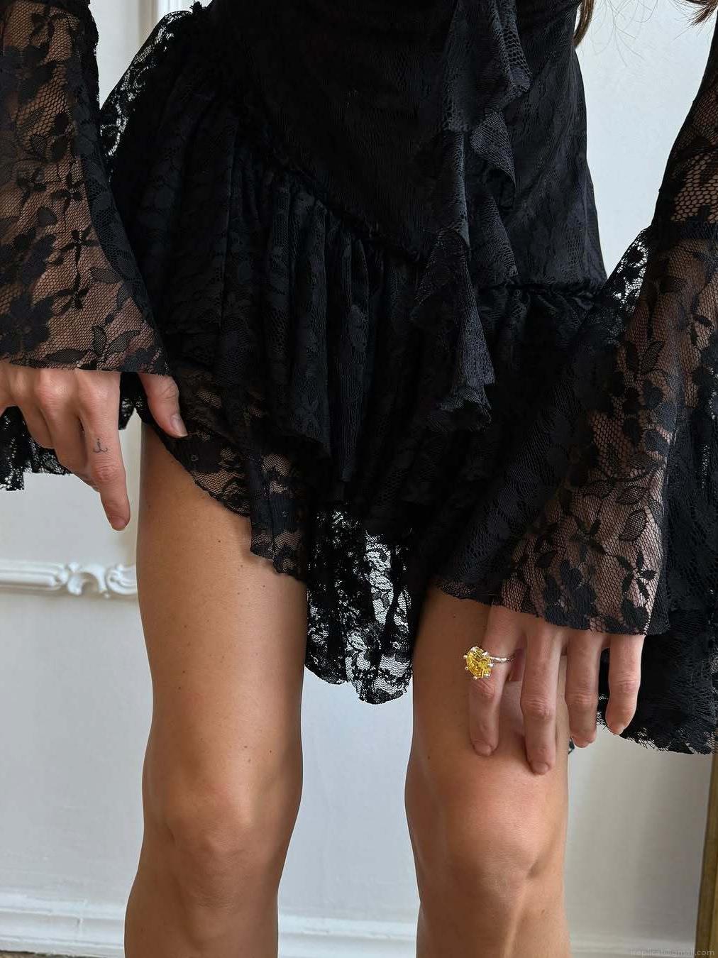 • Women's French Style Black Lace V-Neck Midi Dress Sexy Long Flared Sleeve Hollow Out Ruffle Bodycon Pencil Dress For Evening Party Clubwear