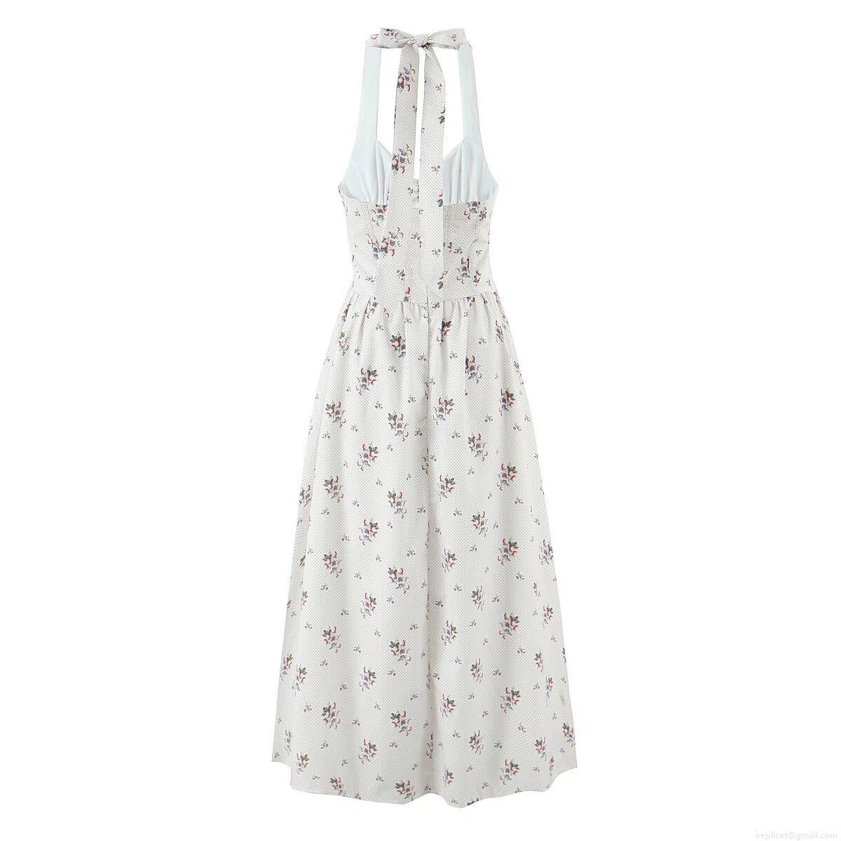 • Women's Halter Neck Backless Floral Print Midi Dress Nylon Spandex Off-White Polka Dot Lace-up A-Line Dress for Summer Party Vacation Elegant Streetwear Slim Fit Dress