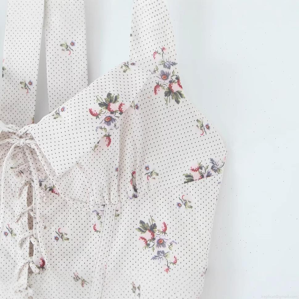 Splice, Polka Dots, Floral Pattern, Waist shaping, Drawstring, Neckband, Lace, Backless
