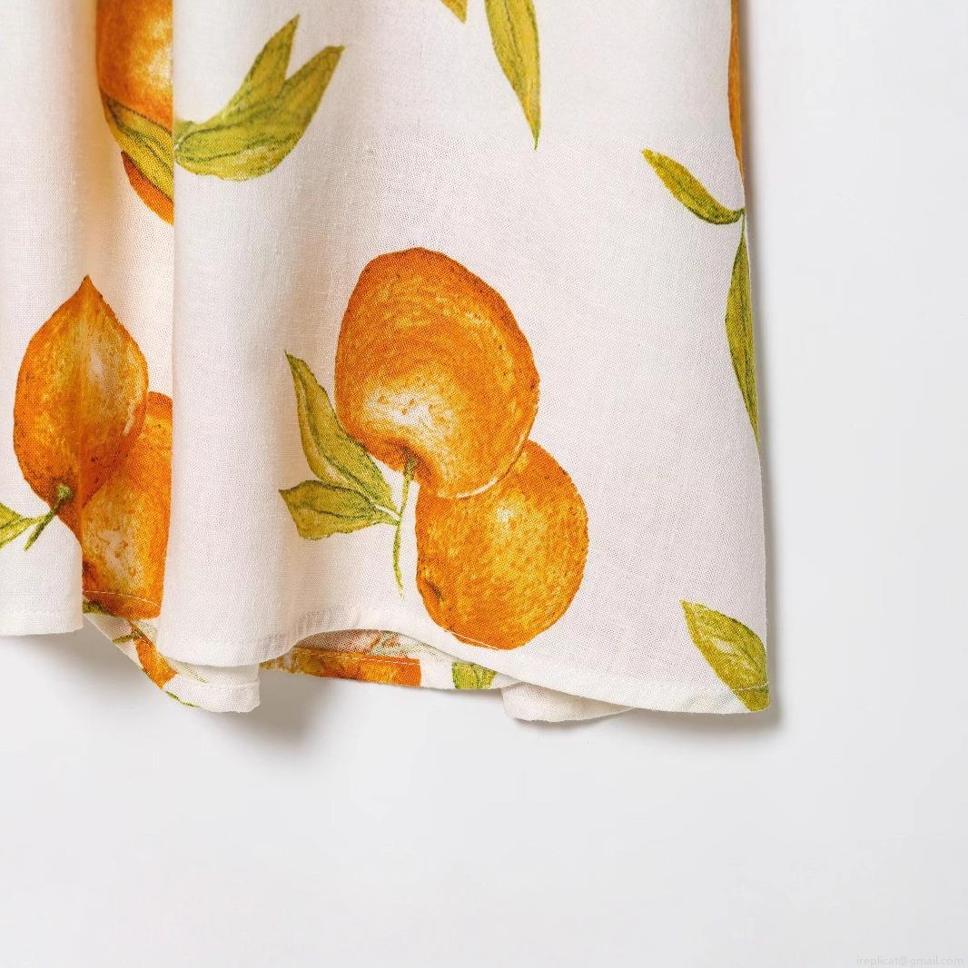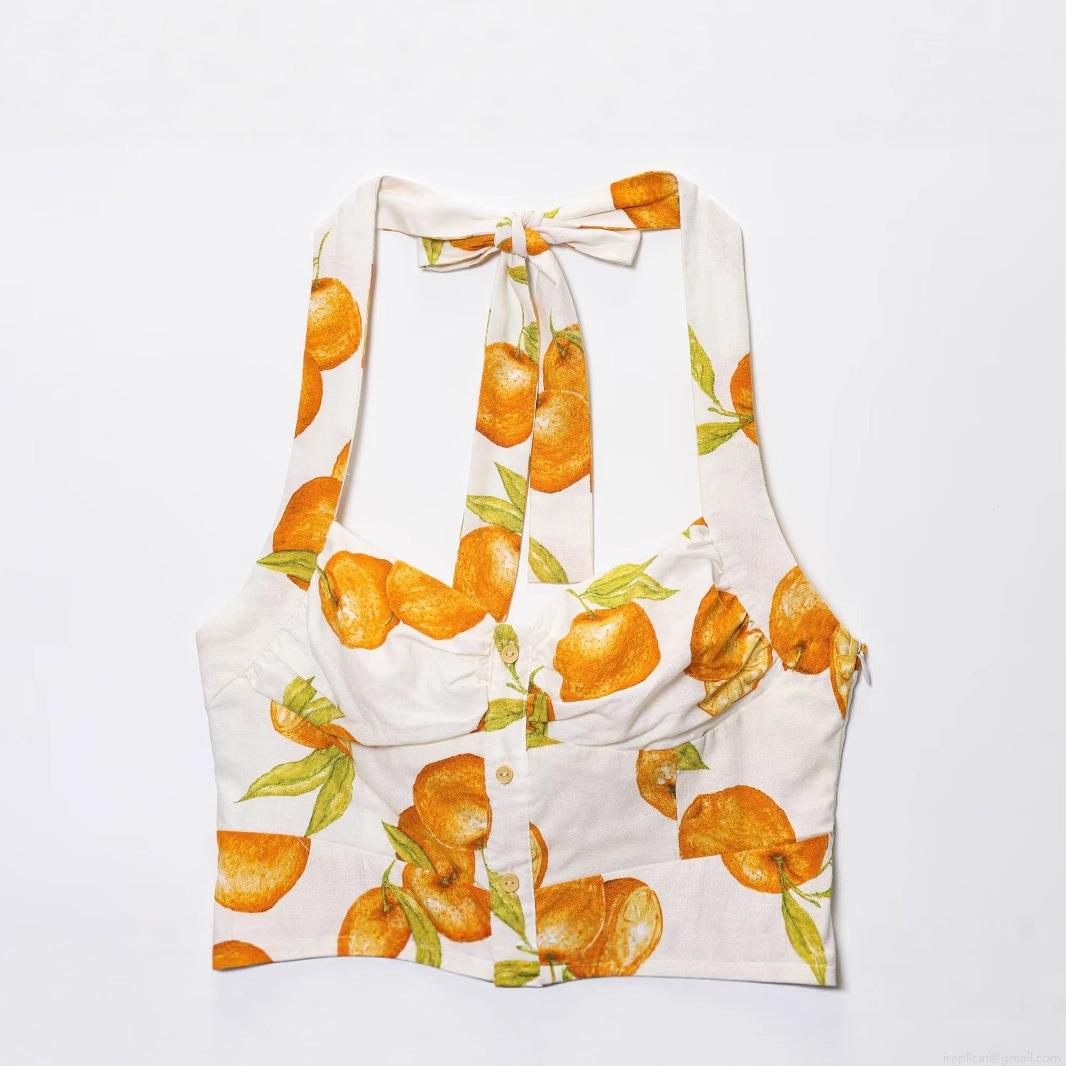 Tangerine, Pleats, Printing, Orange, Straps, Neckband, Wooden Buttons