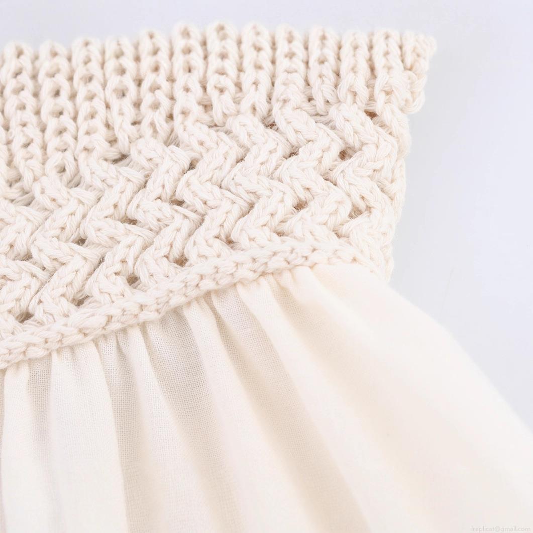 Women's Ivory White Knit Splicing Camisole Dress V-Neck Backless Lace-Up Midi Bohemian Summer Streetwear Dress With Lace Trim Embroidery