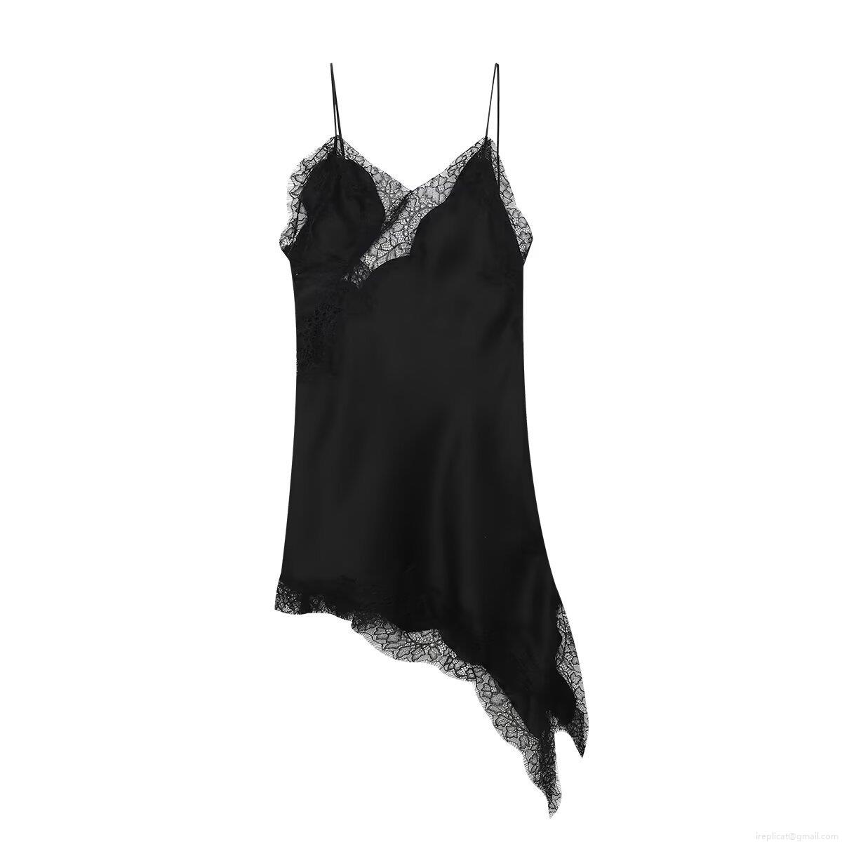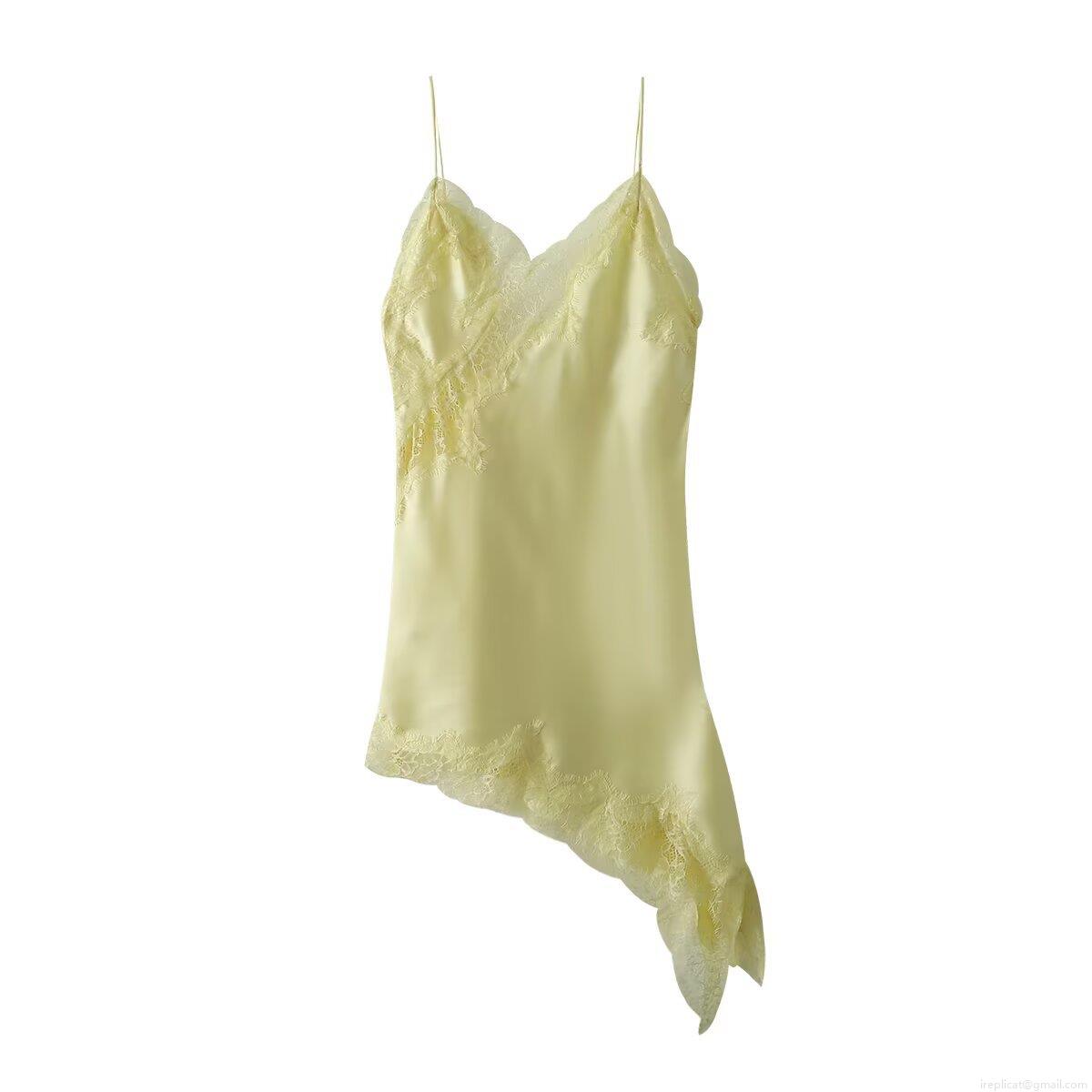 • Women's Lace Patchwork Asymmetric Hem Satin Camisole Dress Sleeveless V-Neck Midi Slip Dress Streetwear Party Nightclub Vestido