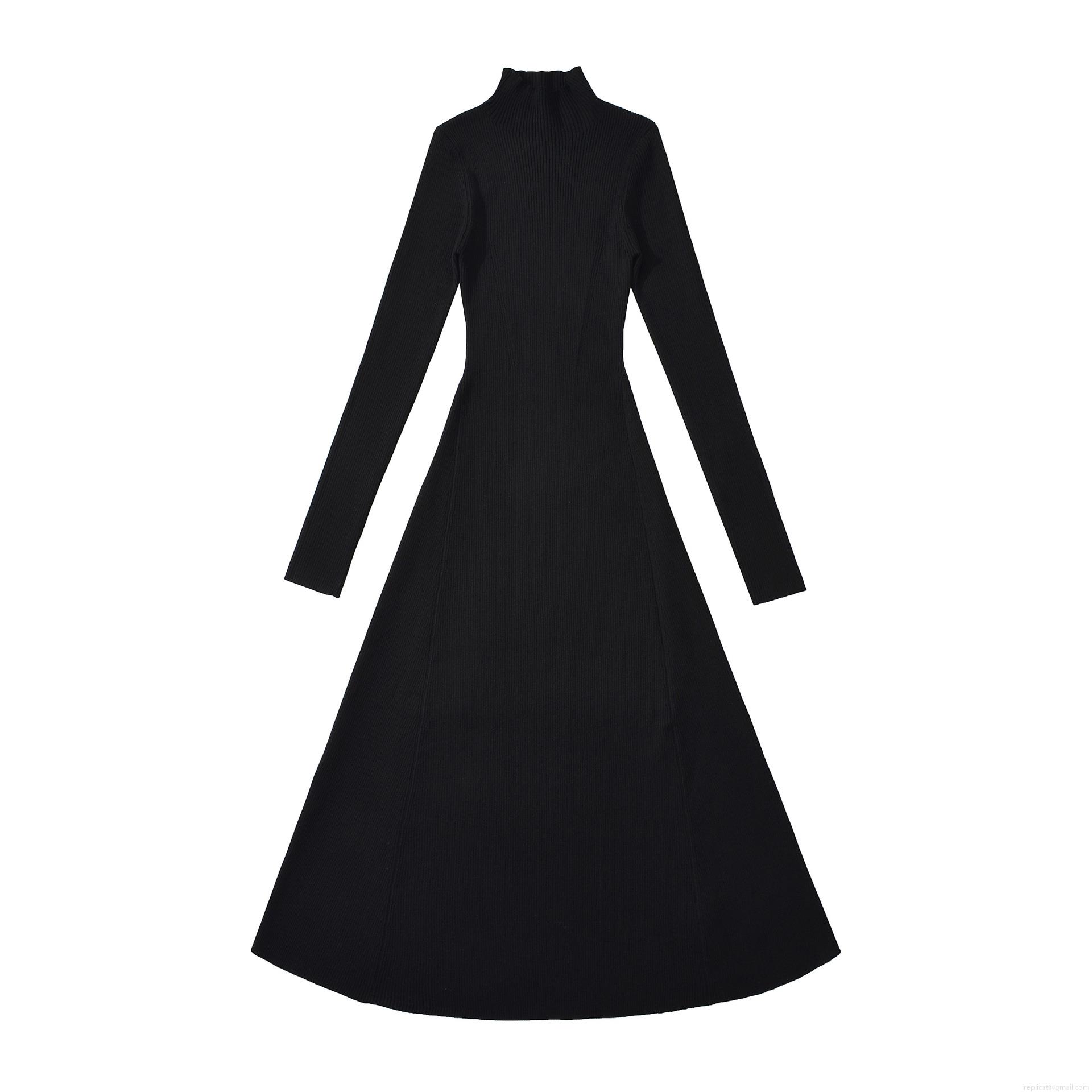 Solid Color, Waist shaping, Vertical Stripes, Ribbed Strip, Mock Neck, A-line Skirt