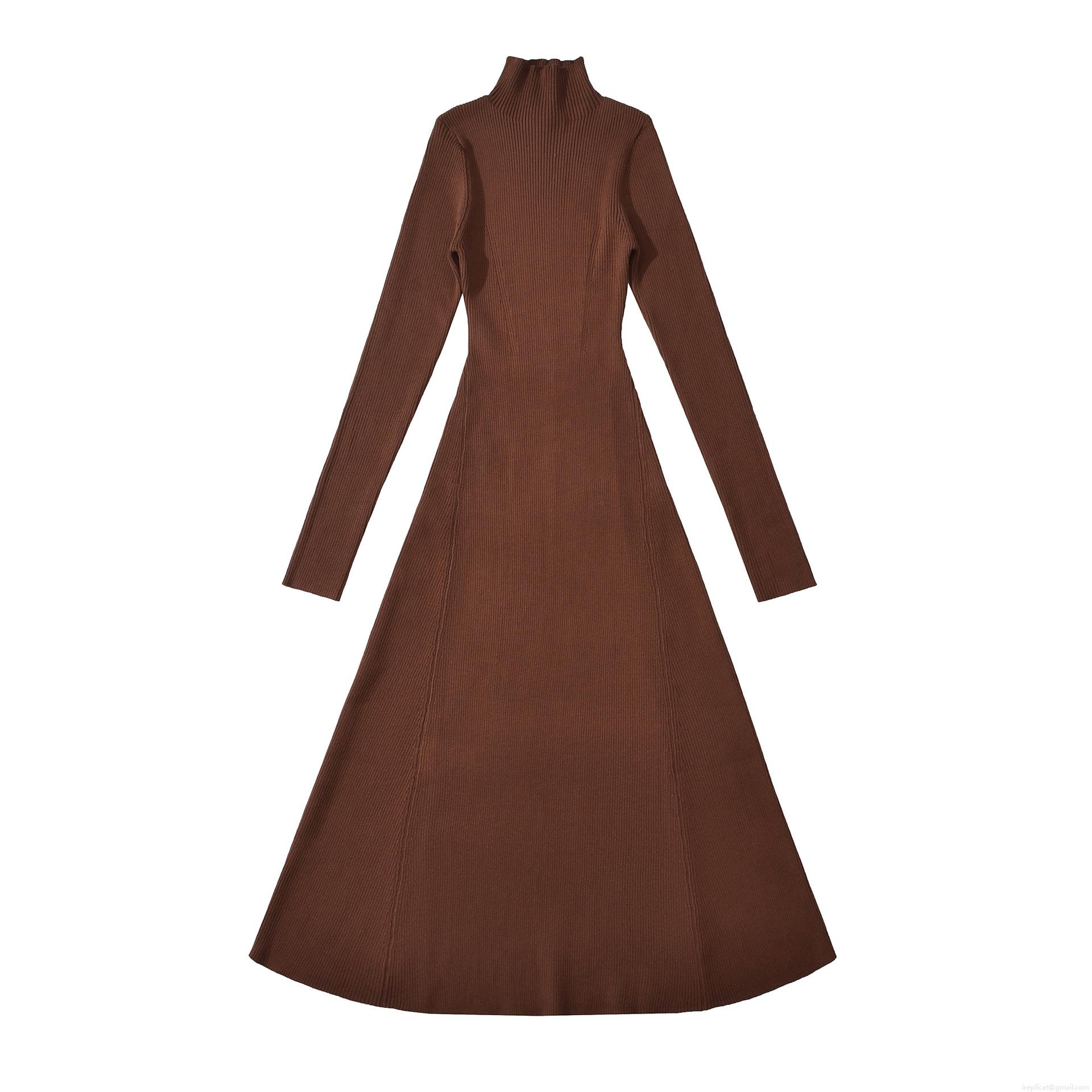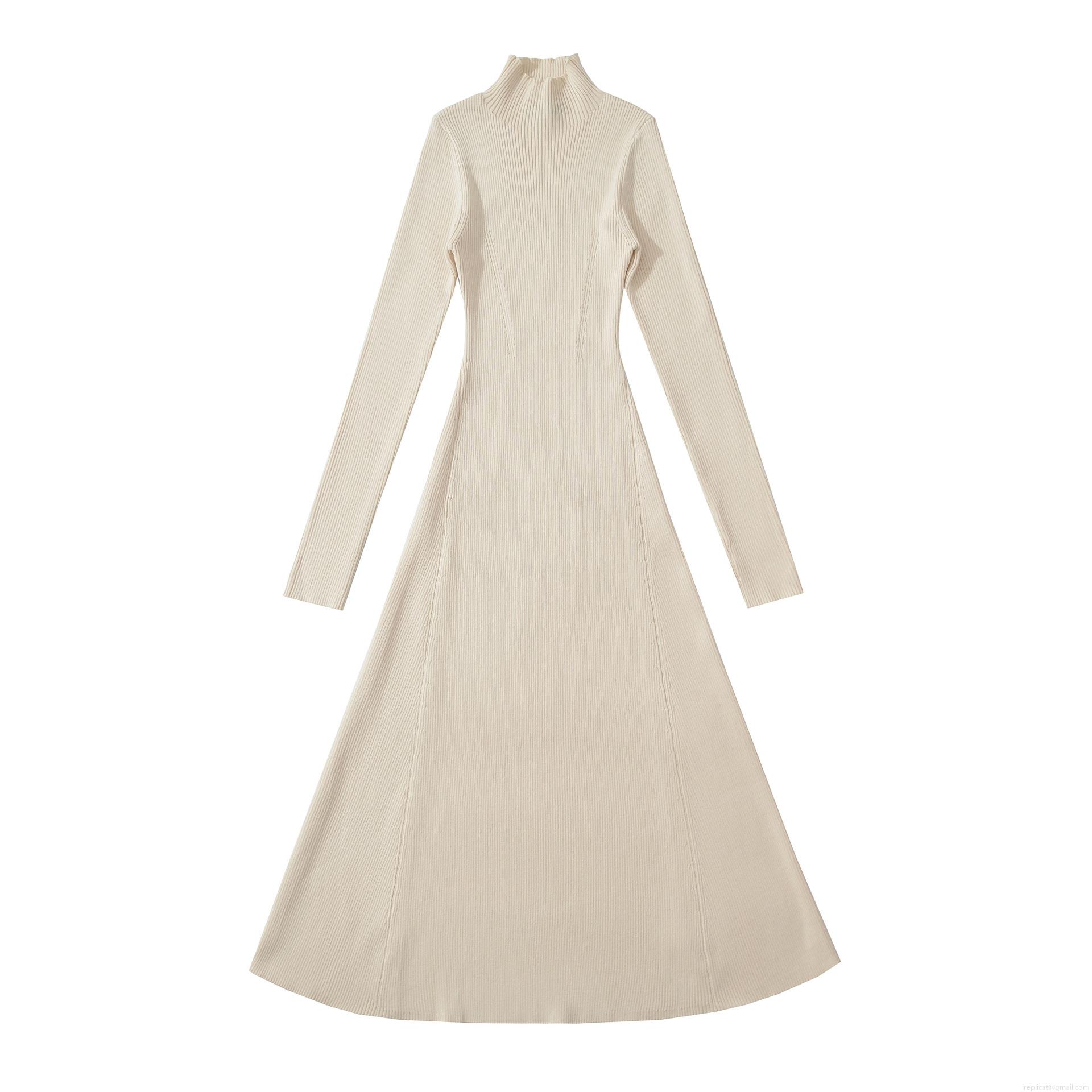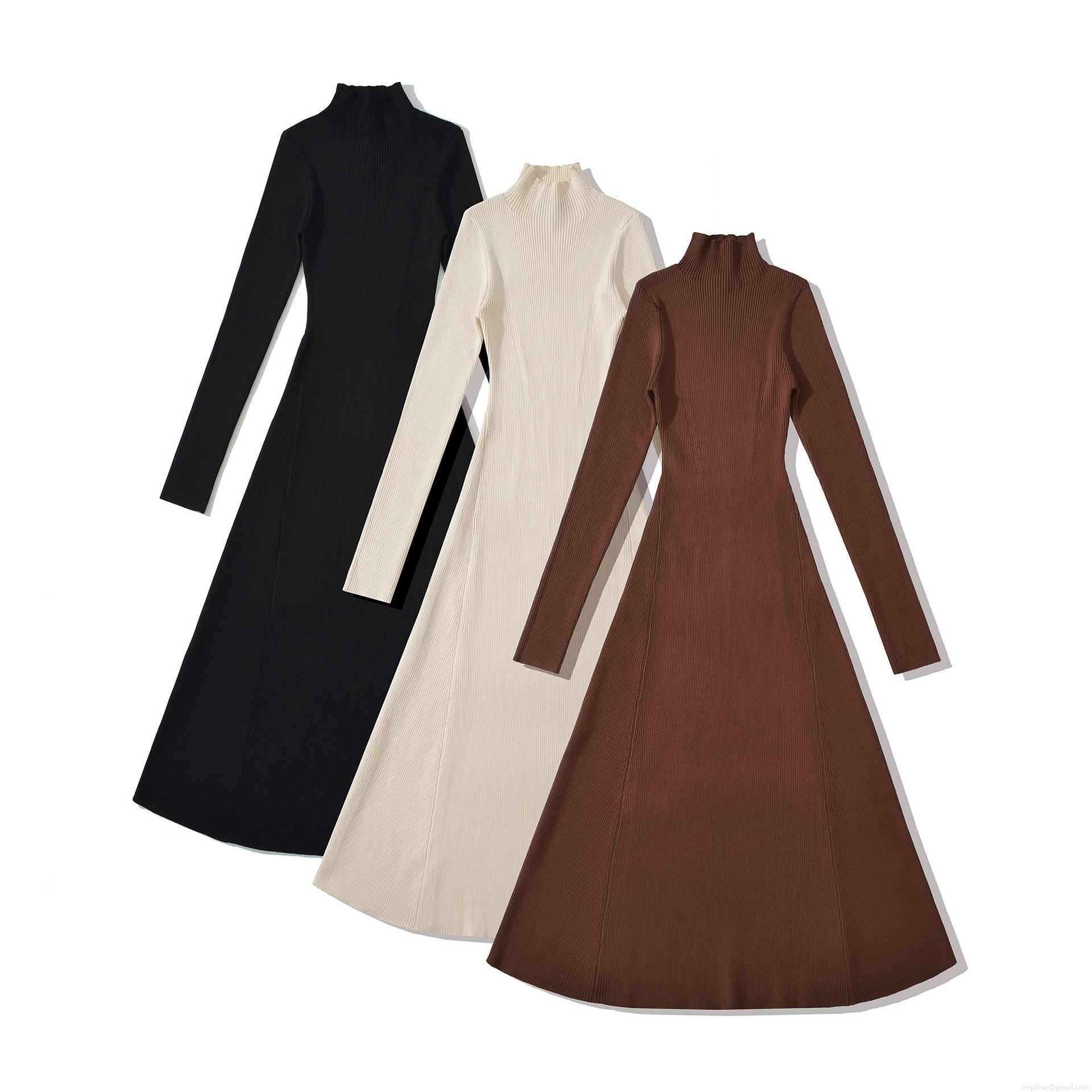 • Women's Mock Neck Long Sleeve Ribbed Knit Midi Dress Pure Cotton Slim Fit A-Line Sweater Dress Elegant Solid Color Casual Streetwear Autumn Winter One-Piece