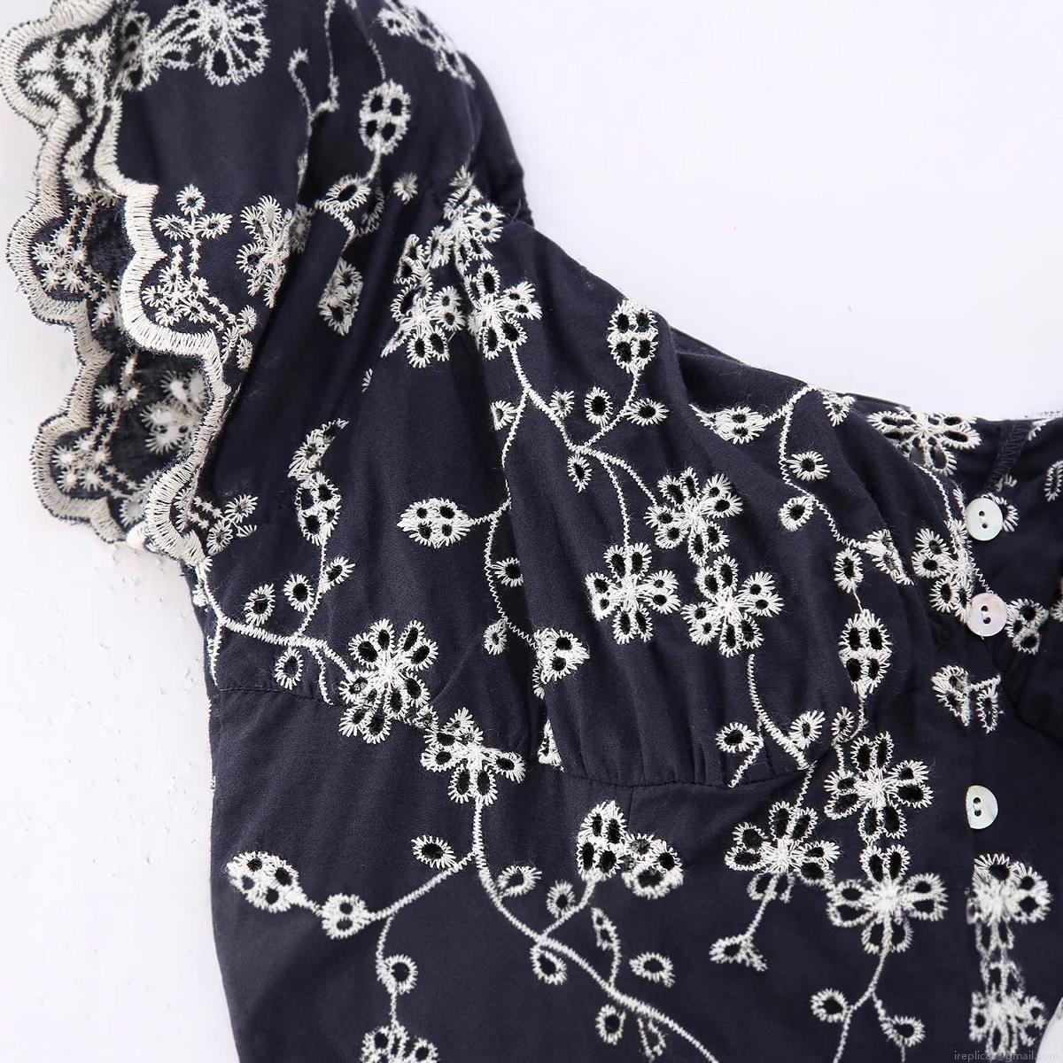 Splice, Embroidery, Hollow Out, Ruffles, Flowers, Button