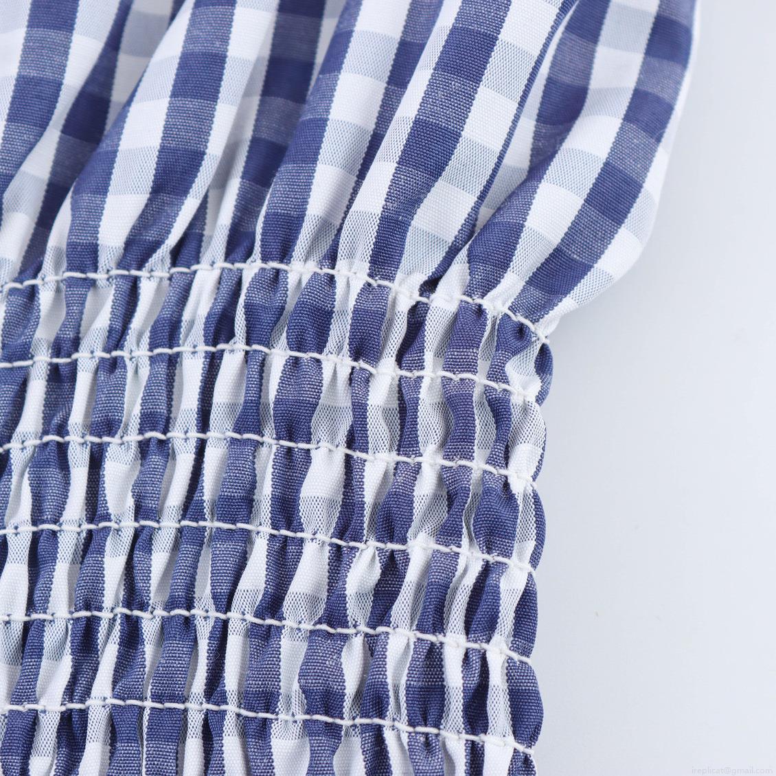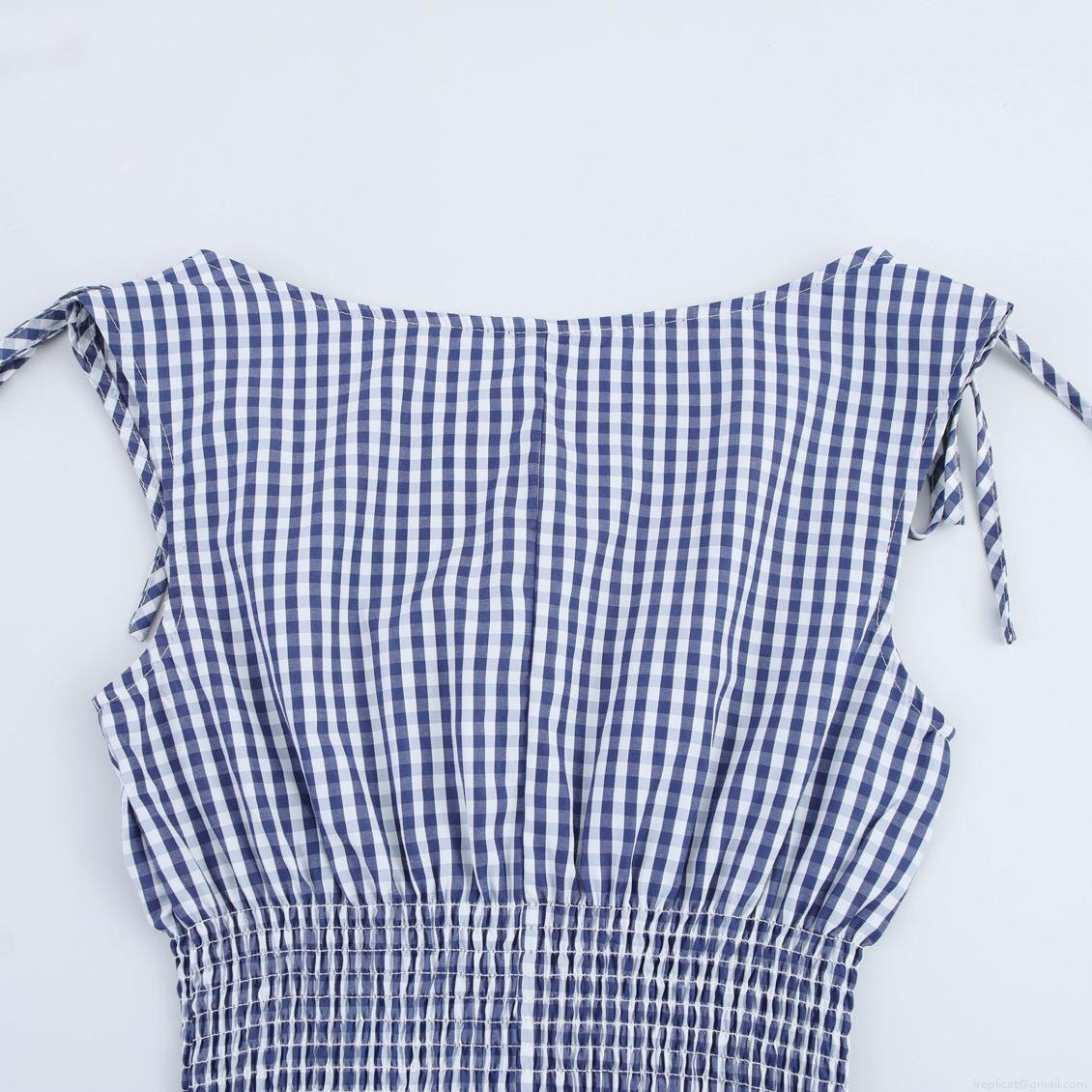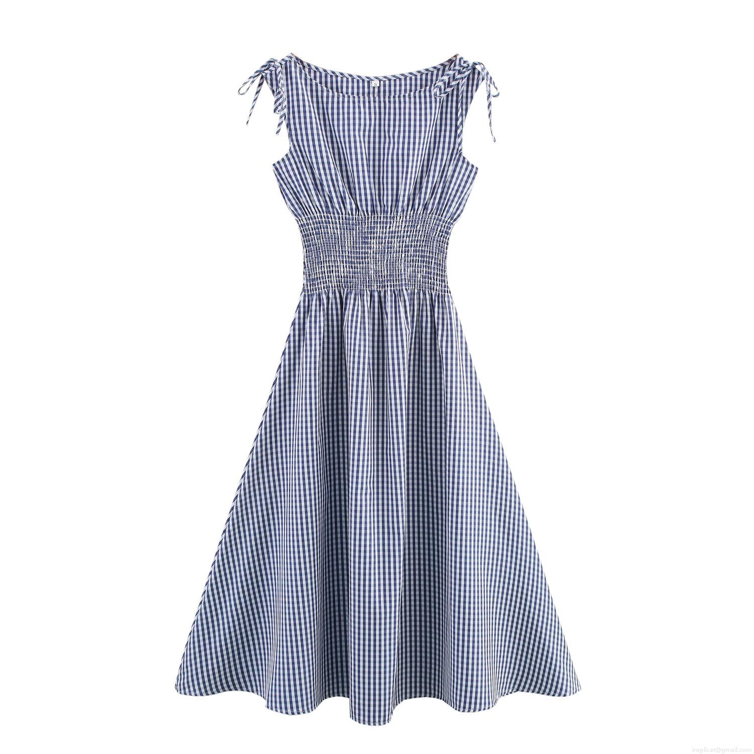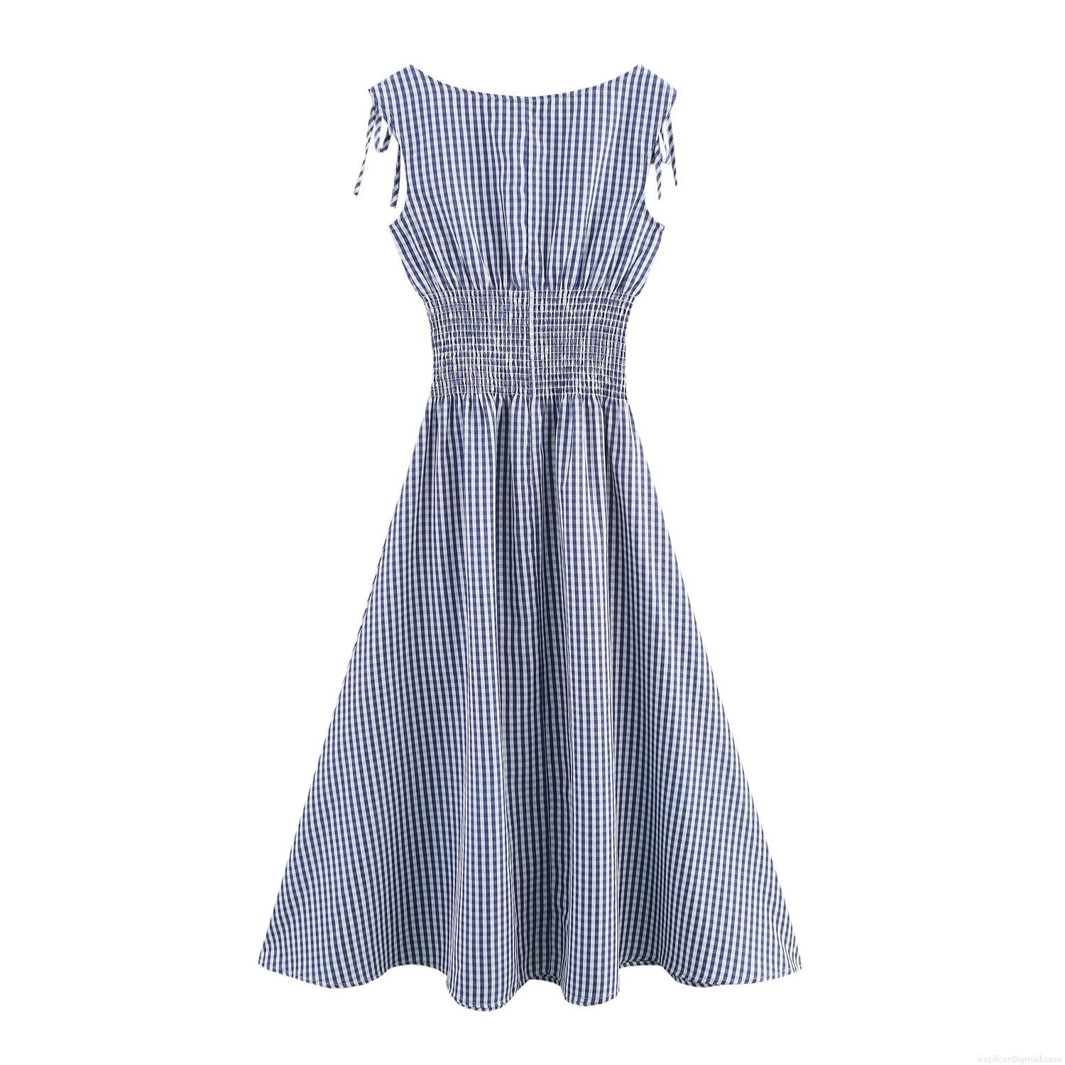 • Women's Navy Blue Plaid Smocked Midi Dress Off-Shoulder Tie Shoulder Sleeveless Pleated A-Line Gingham Long Dress Casual Summer Beach Polyester Gown