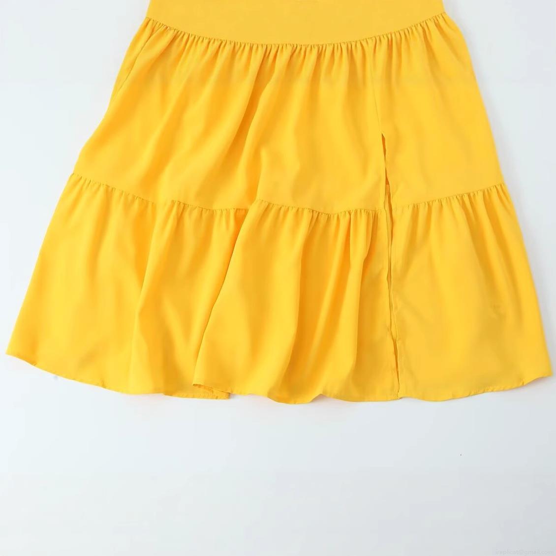 Solid Color, Ruffles, Side Fork, Off-shoulder, Elastic Gathering, Multi-tiered Cake