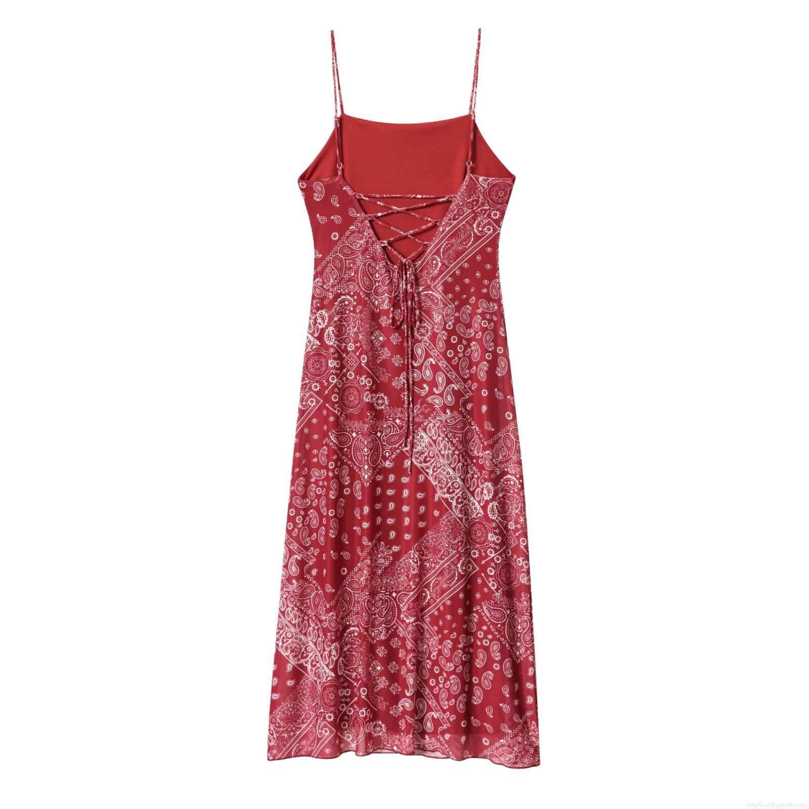 • Women's Paisley Print Cami Dress Sexy Backless Lace Up Maxi Dress High Slit Summer Casual Vacation Boho Sleeveless Polyester Long Sundress