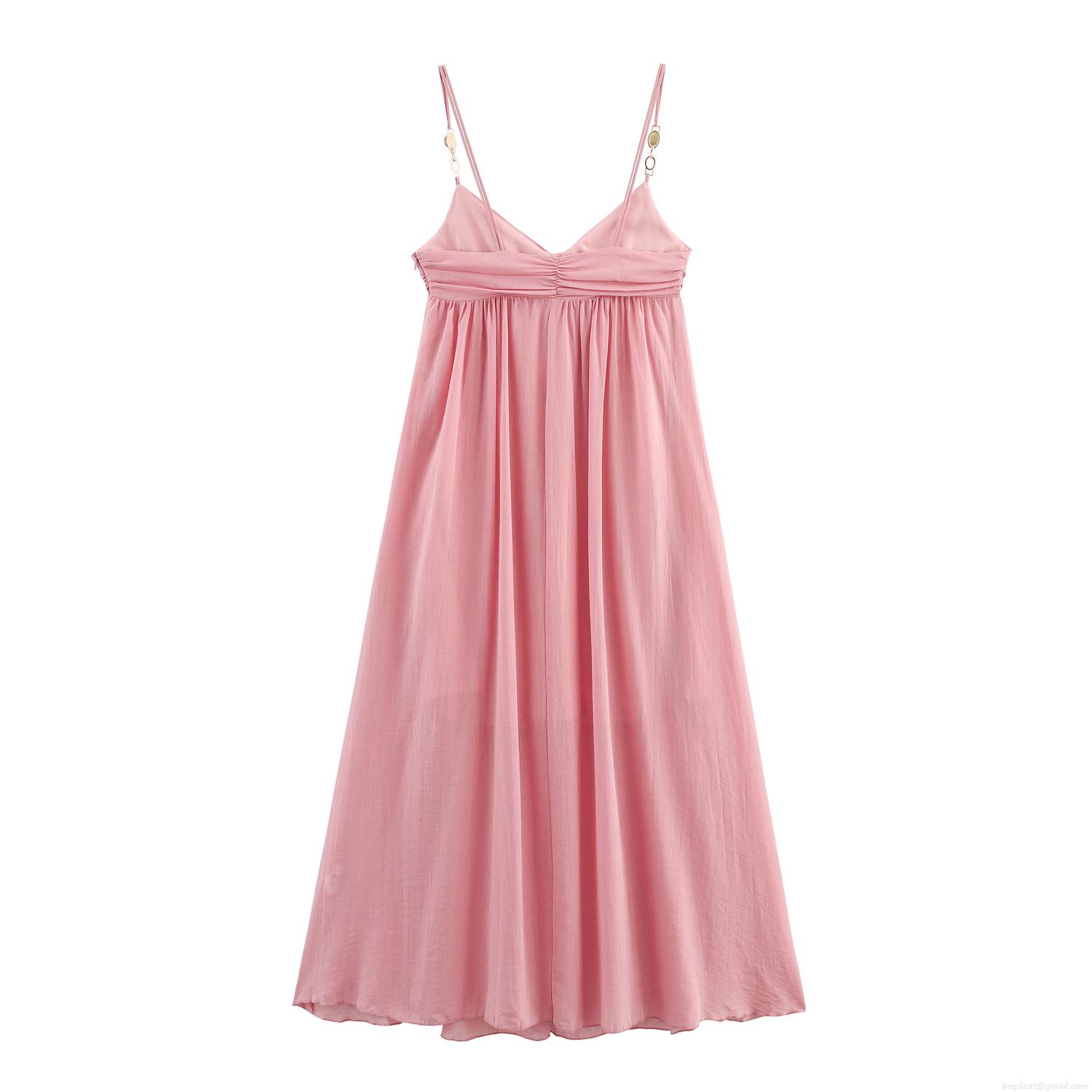 • Women's Pink Midi Dress Twist Knot Front Crepe Sleeveless Strap Long Dress With Gold Tone Metal Gem Accent For Summer Elegant Sweet Date Party Gown