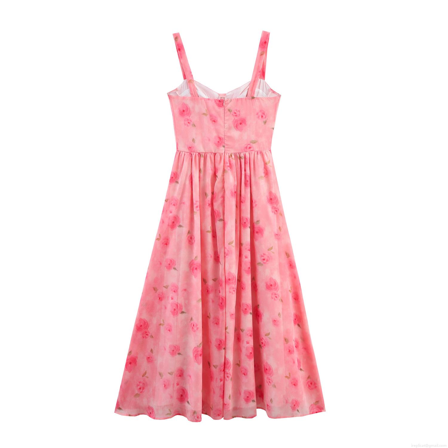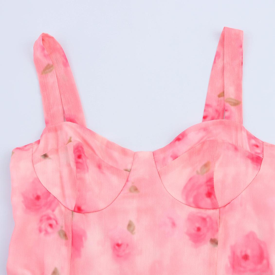 • Women's Pink Rose Floral Chiffon Midi Dress Sweetheart Neck Sleeveless Backless A-Line High Waist Dress For Summer Vacation Date Night Sweet Girl Style