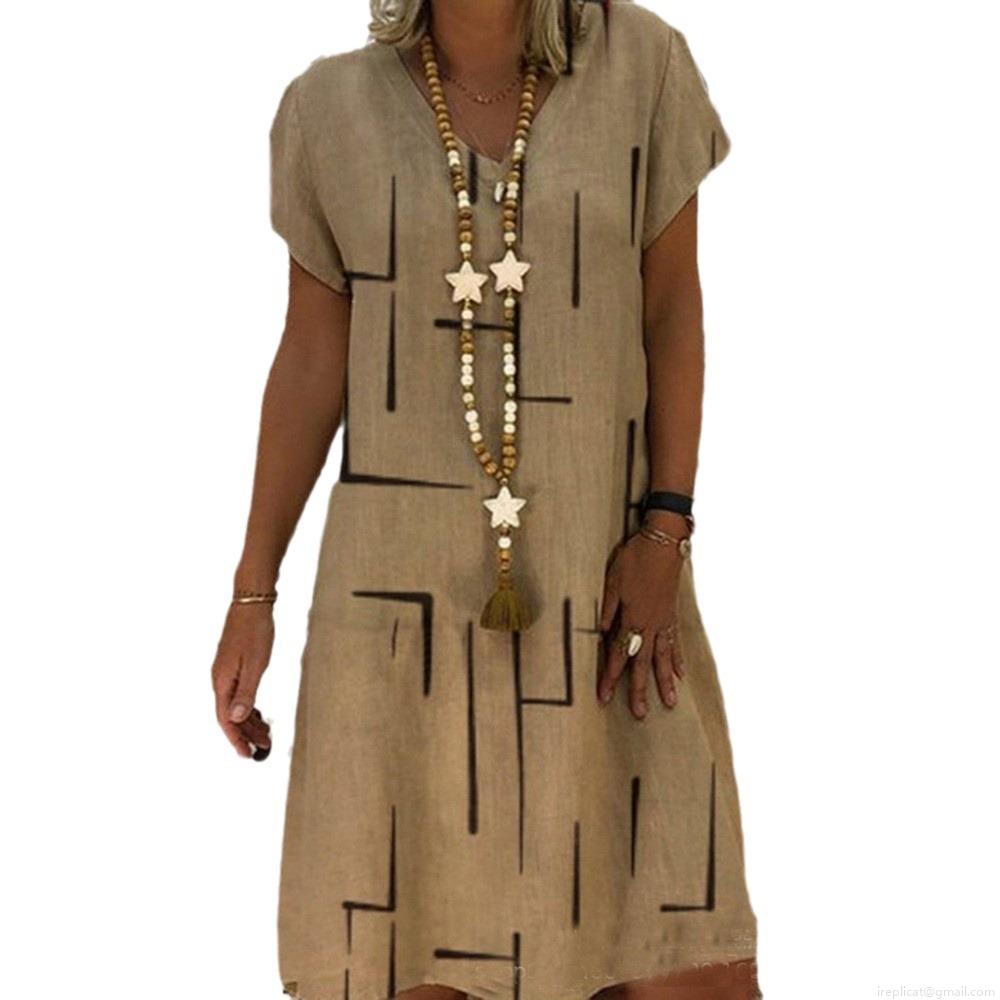 • Women's Plus Size Bohemian Geometric Line Print Midi Dress Loose Fit V-Neck Short Sleeve Summer Vacation Casual Polyester Dress For Women S-5XL