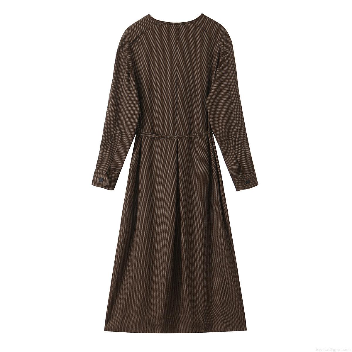 • Women's Polka Dot Long Sleeve Midi Dress With Belt Elegant Round Neck Button Up Coffee Brown Woven Polyester Casual Office Dress For Ladies