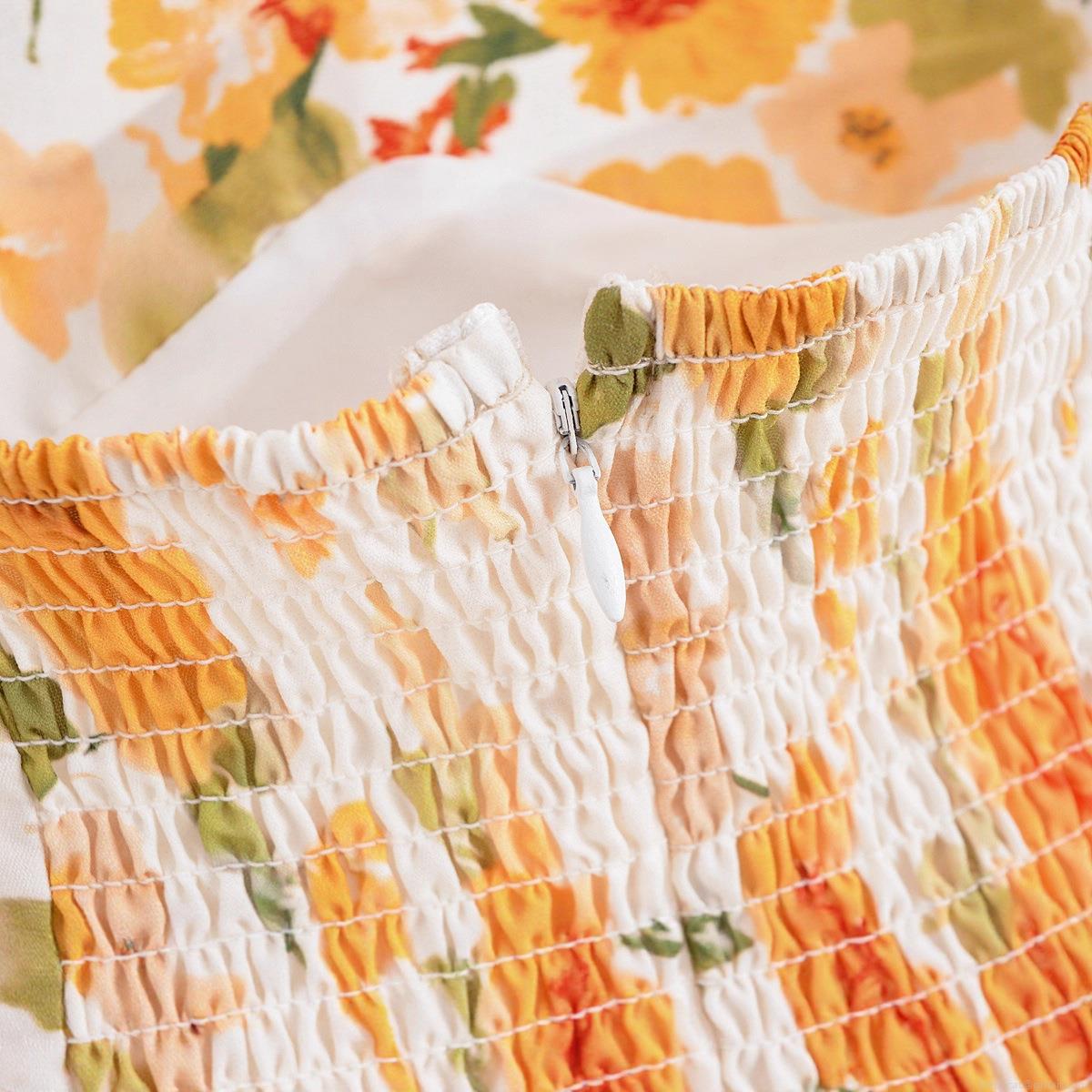 Women's Polyester Strapless Rose Floral Print Midi Dress Smocked Back A-Line Slim Fit Sleeveless Sun Dress For Vacation Party Summer