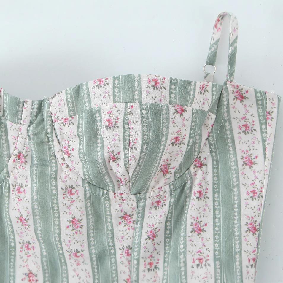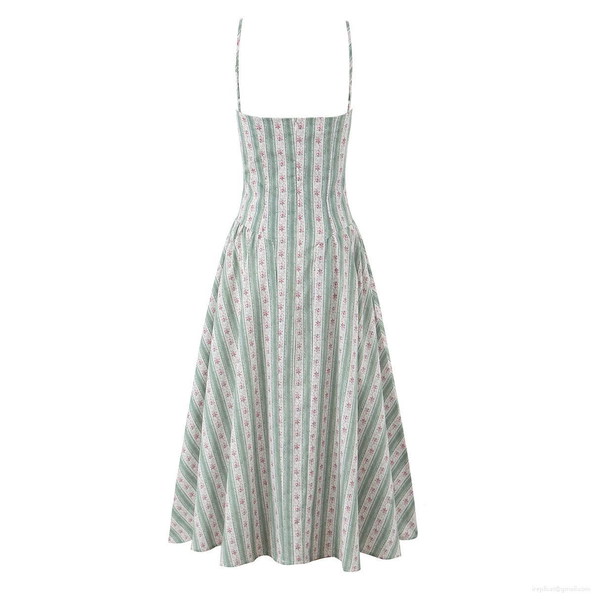• Women's Retro Floral Stripe Cami Midi Dress Elegant Underwire Ruched Spaghetti Strap Summer Sundress for Vacation Sleeveless Bodycon A-Line Dress