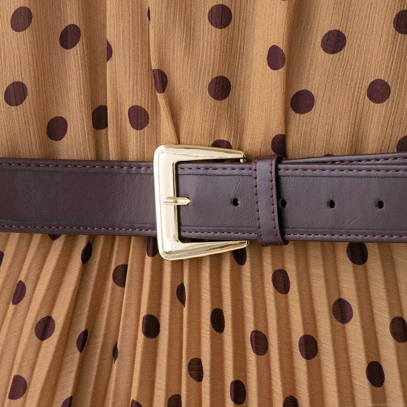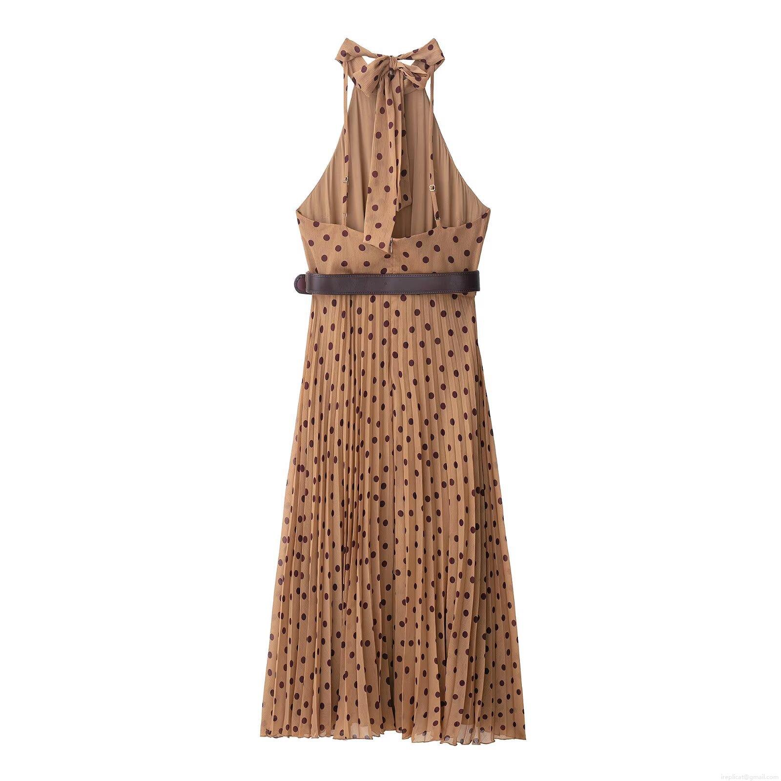 • Women's Retro Halter Neck Polka Dot Pleated Midi Dress With Faux Leather Belt Chiffon Sleeveless A-Line Elegant Party Dress For Summer Autumn