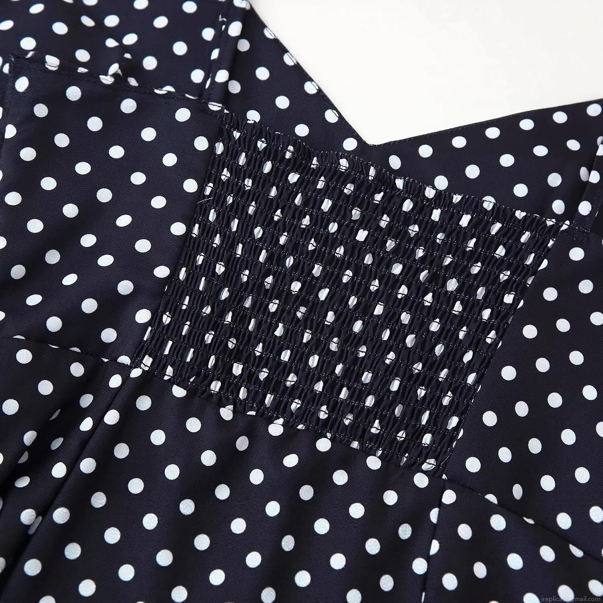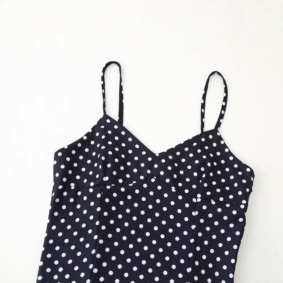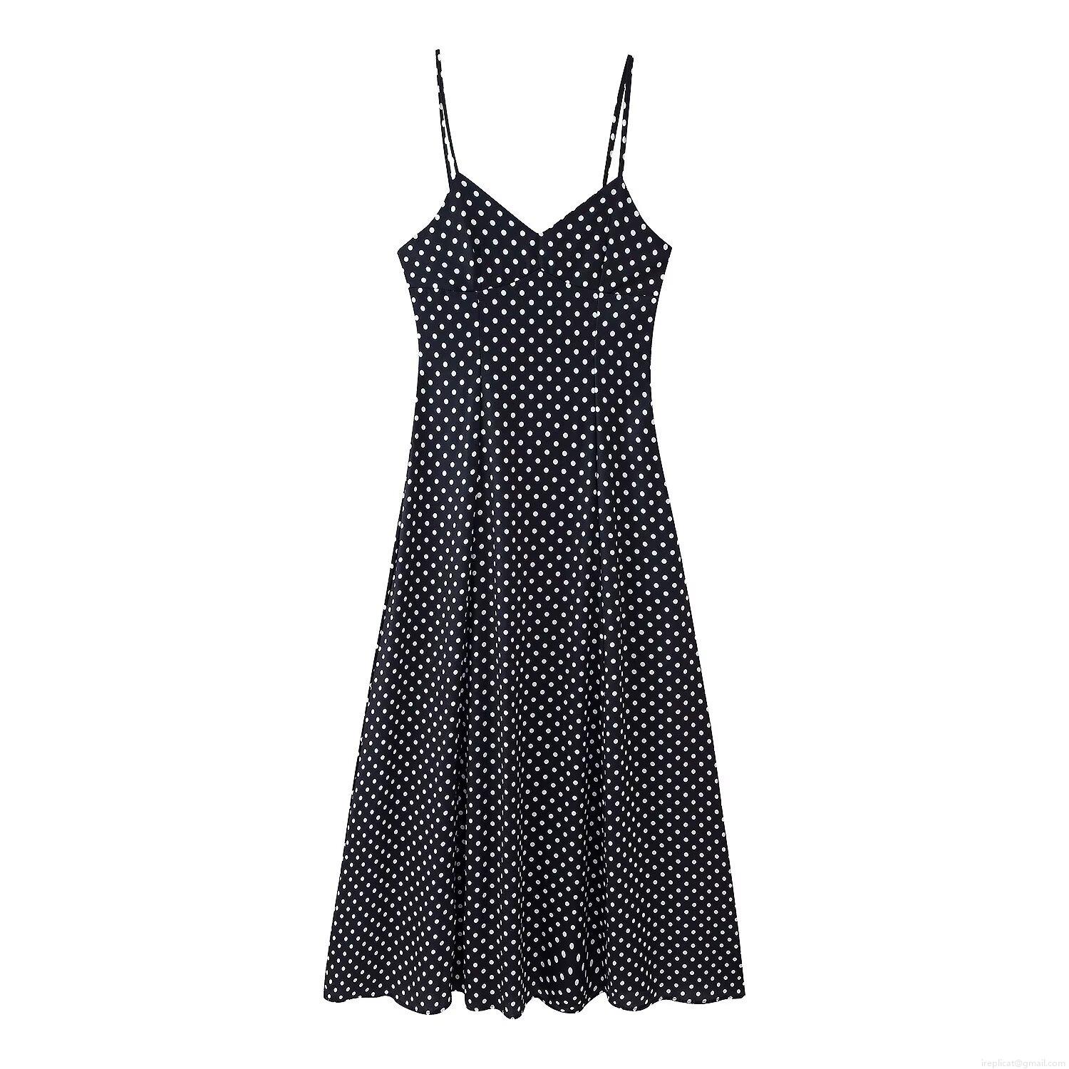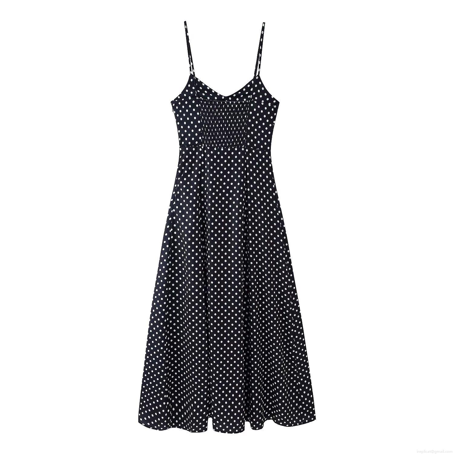 • Women's Retro Polka Dot Slip Dress V-Neck Smocking Detail Spaghetti Strap Polyester Blend Maxi Dress For Summer Beach Party Streetwear