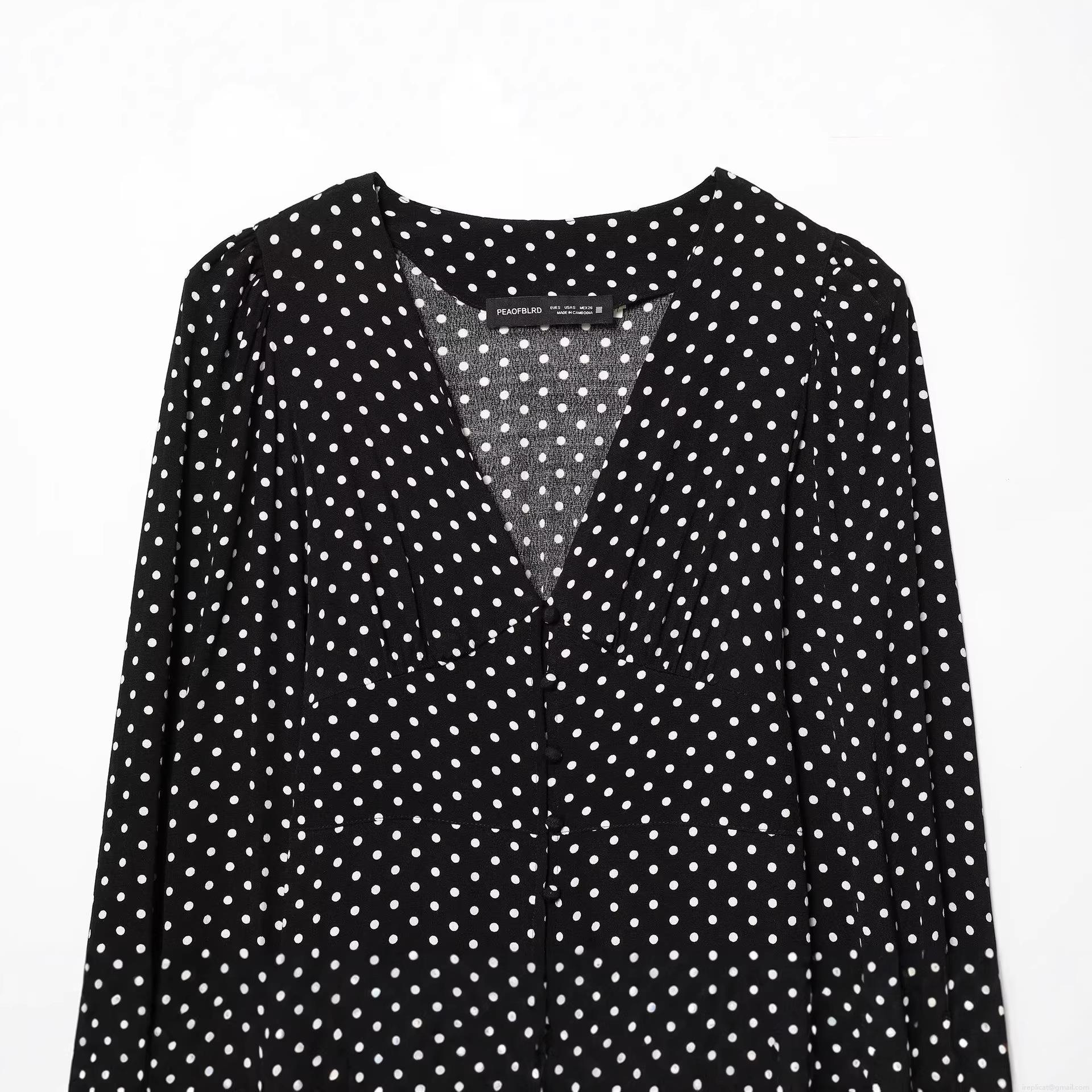 Polka Dots, Waist shaping, V-neck, Forked, Single-breasted