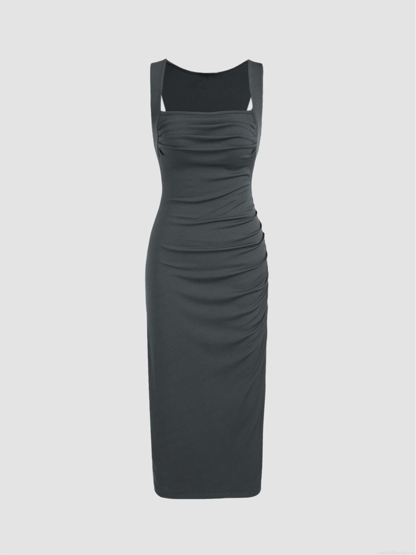 • Women's Ribbed Knit Bodycon Midi Dress Sleeveless Square Neck Ruched Side Elegant Sexy Tight Pencil Dress For Party Club Night 95% Polyester 5% Elastane Blend