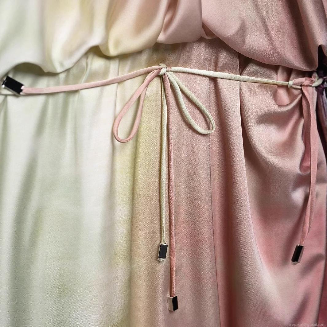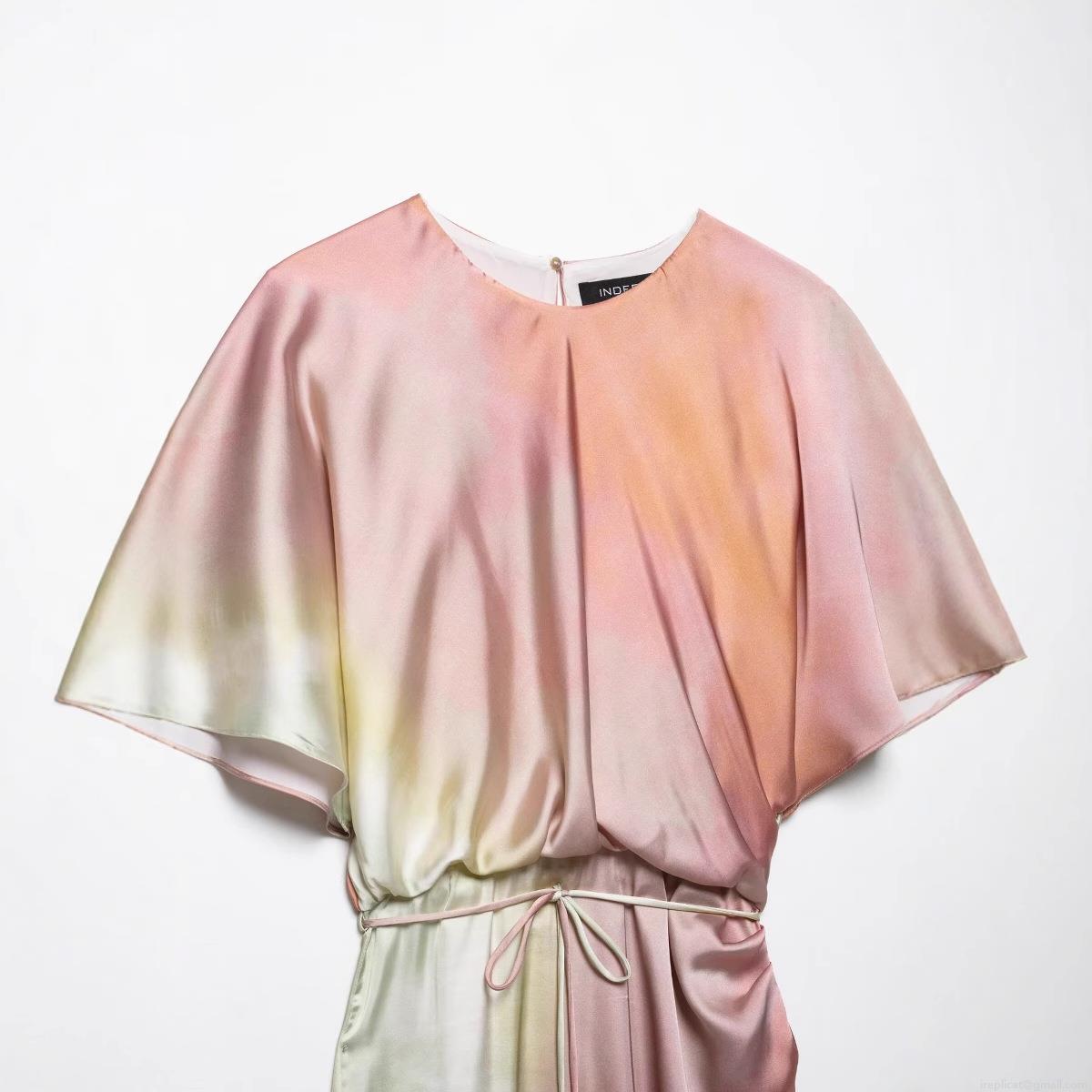 • Women's Satin Tie-Dye Gradient Maxi Dress Elegant Short Batwing Sleeve Round Neck Drawstring Waist Long Dress For Party Vacation Summer Spring Fashion