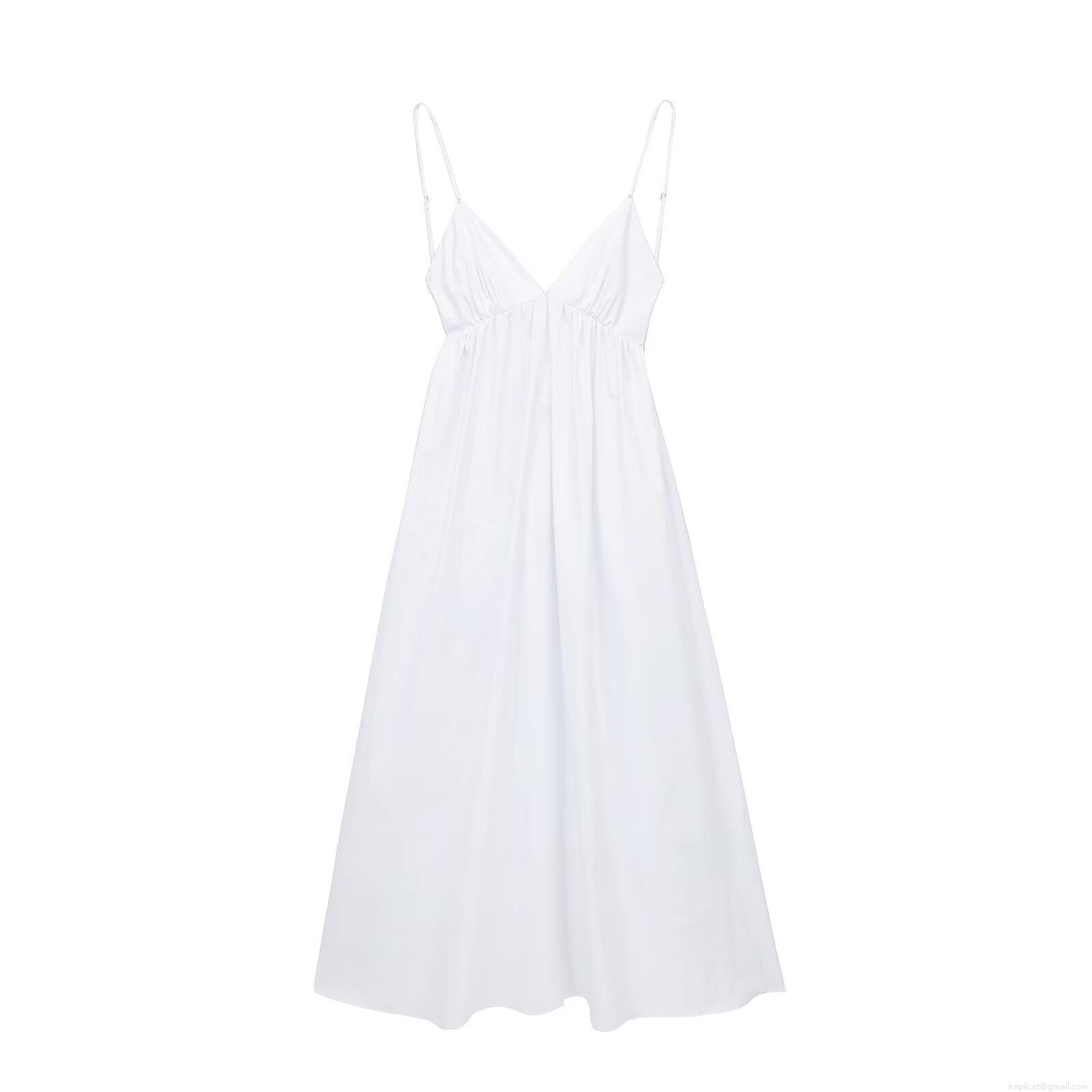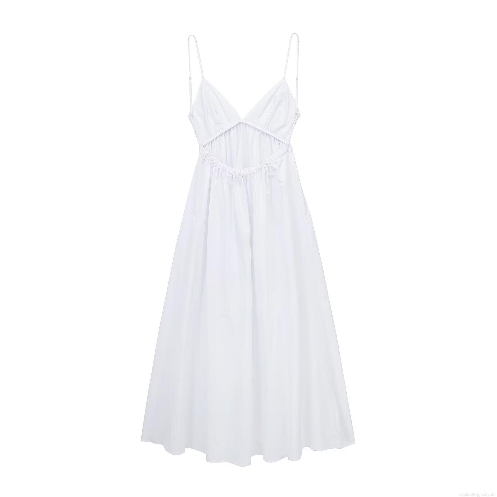 • Women's Sexy Backless Cami Midi Dress V-Neck Hollow Out Pleated Cotton Blend A-Line Long Dress For Summer Party Date Vacation