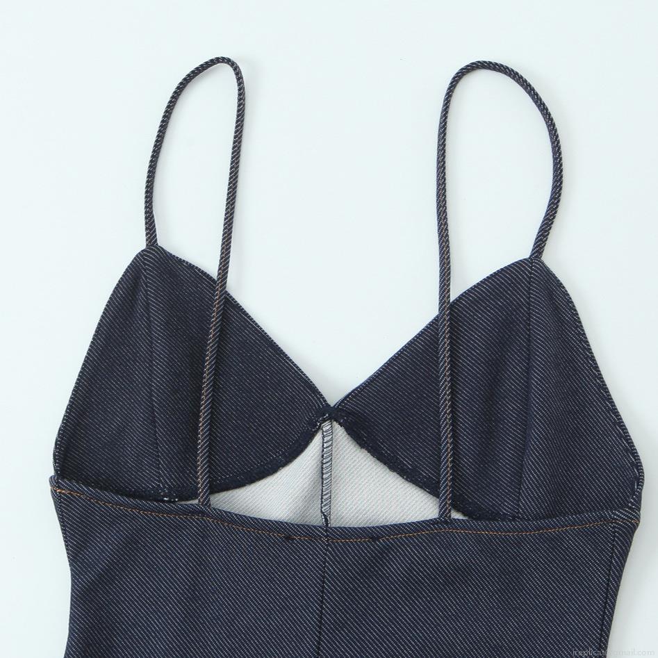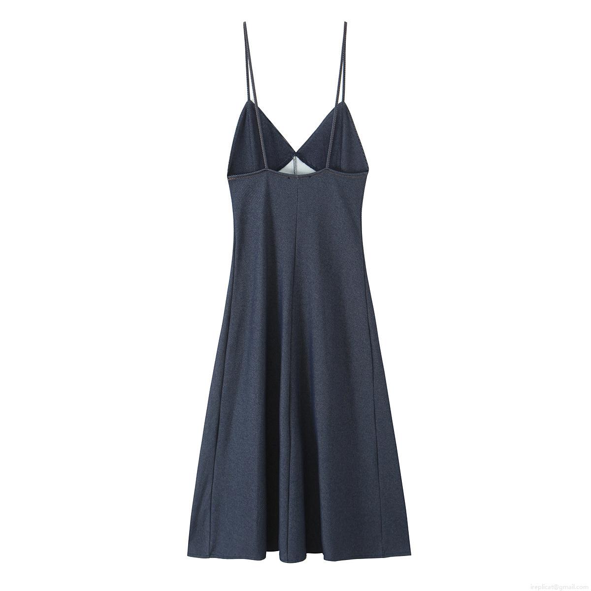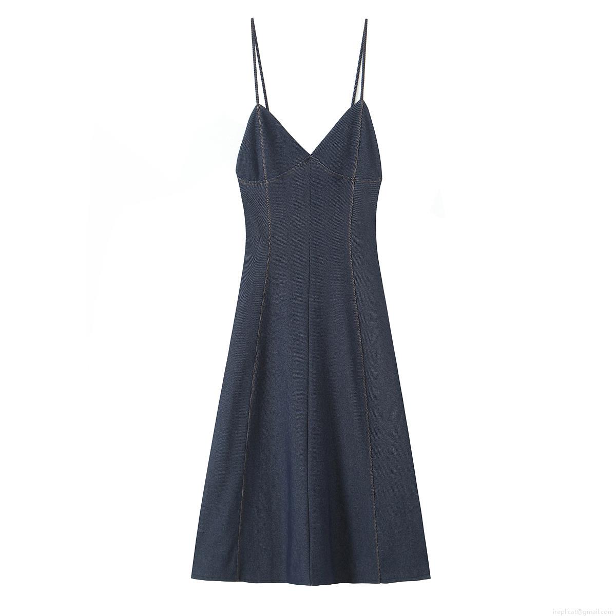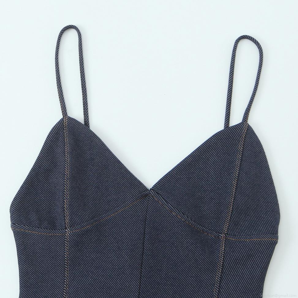 • Women's Sexy Backless Denim Texture Cami Midi Dress Slim Fit V-Neck A-Line Summer Sundress For Party Vacation Dating Blue