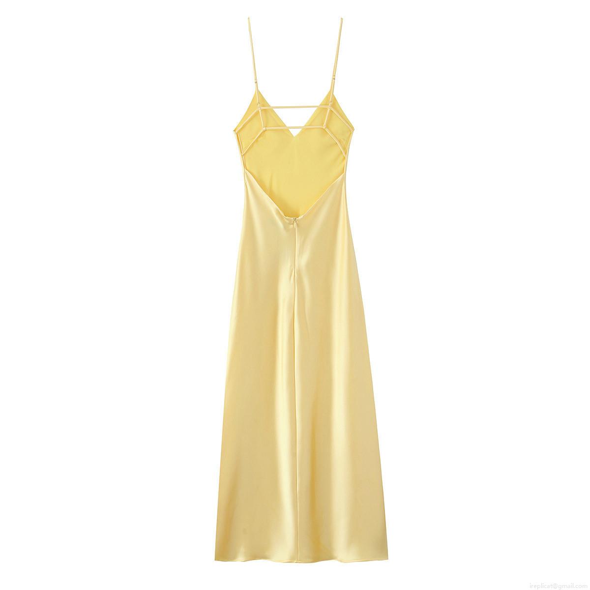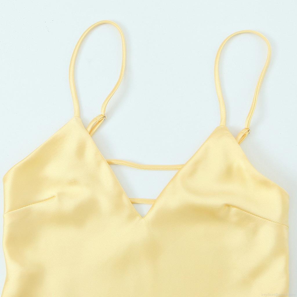 Solid Color, V-neck, Satin Finish, Backless Design, Cross-band