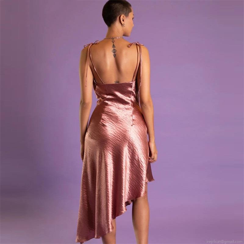 • Women's Sexy Backless Satin Midi Dress Cowl Neck Asymmetric Hem Spaghetti Strap Shiny Velvet Slip Dress Party Evening Clubwear Summer Streetwear