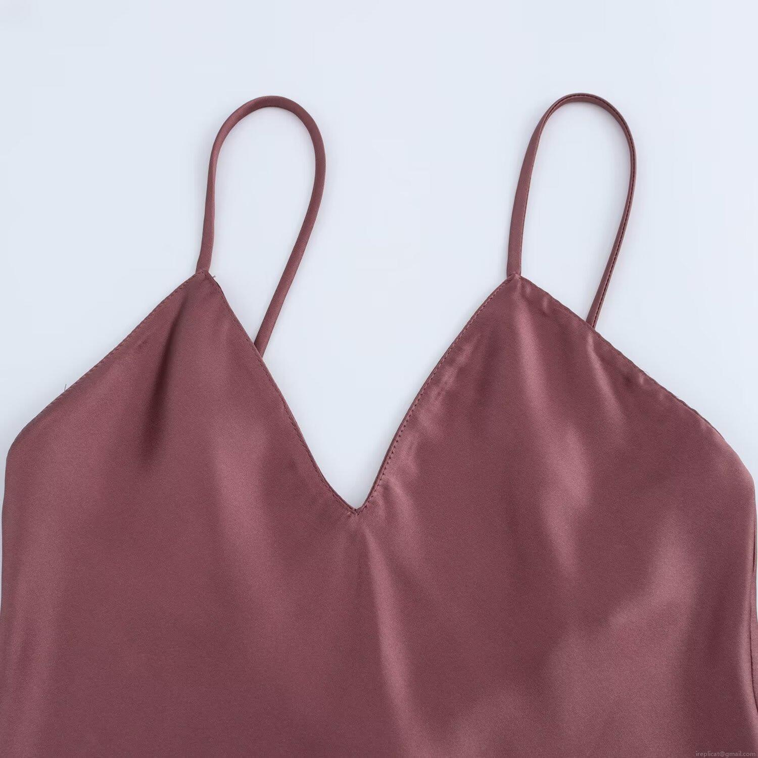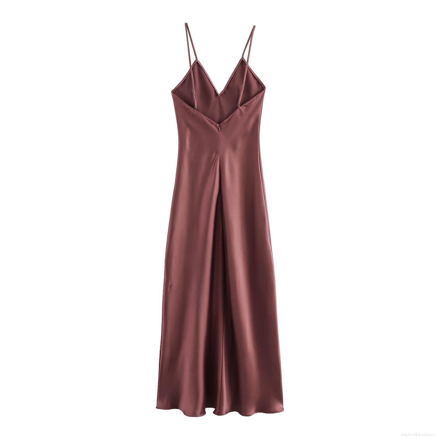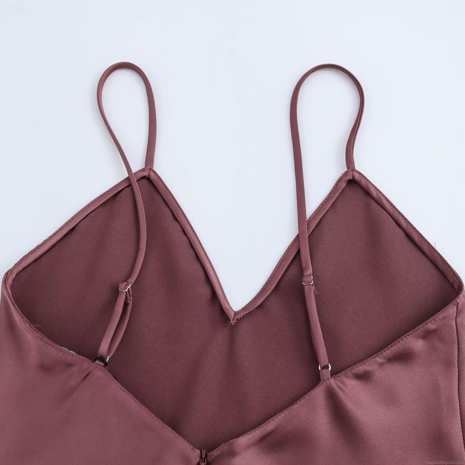 Solid Color, Backless, Satin Texture, Deep V-neck, Thin Straps
