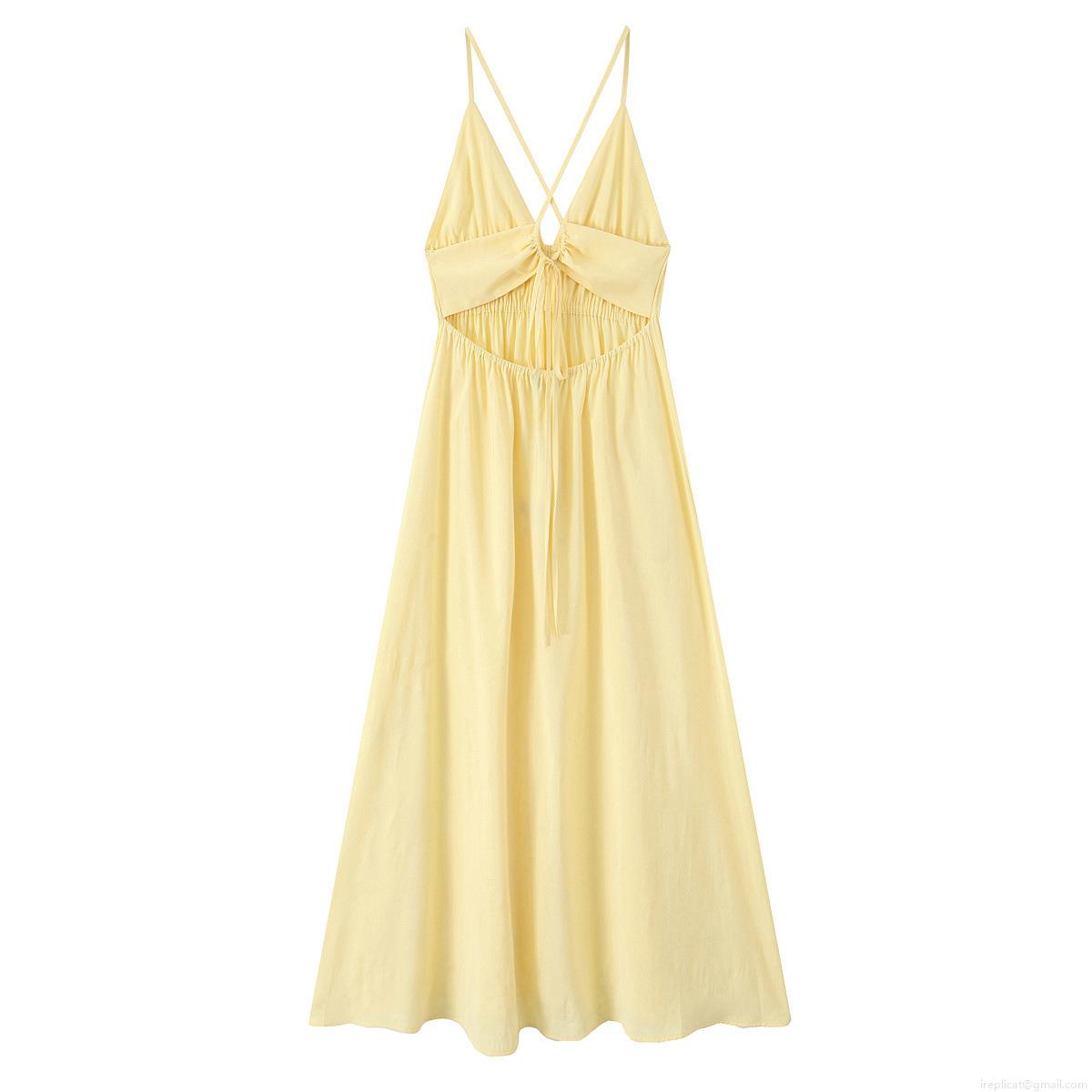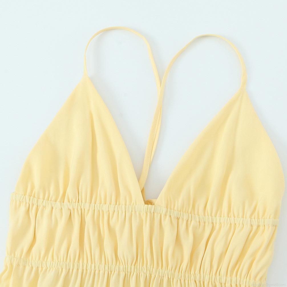 Solid Color, Pleats, V-neck, Backless, Cross Straps