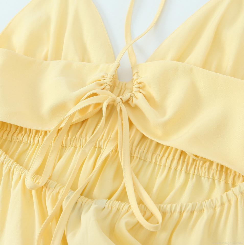 • Women's Sexy Backless Sundress Summer V-Neck Criss Cross Strappy Midi Dress Pleated Waist Solid Color Polyester Spandex Fashion Party Holiday Outfits