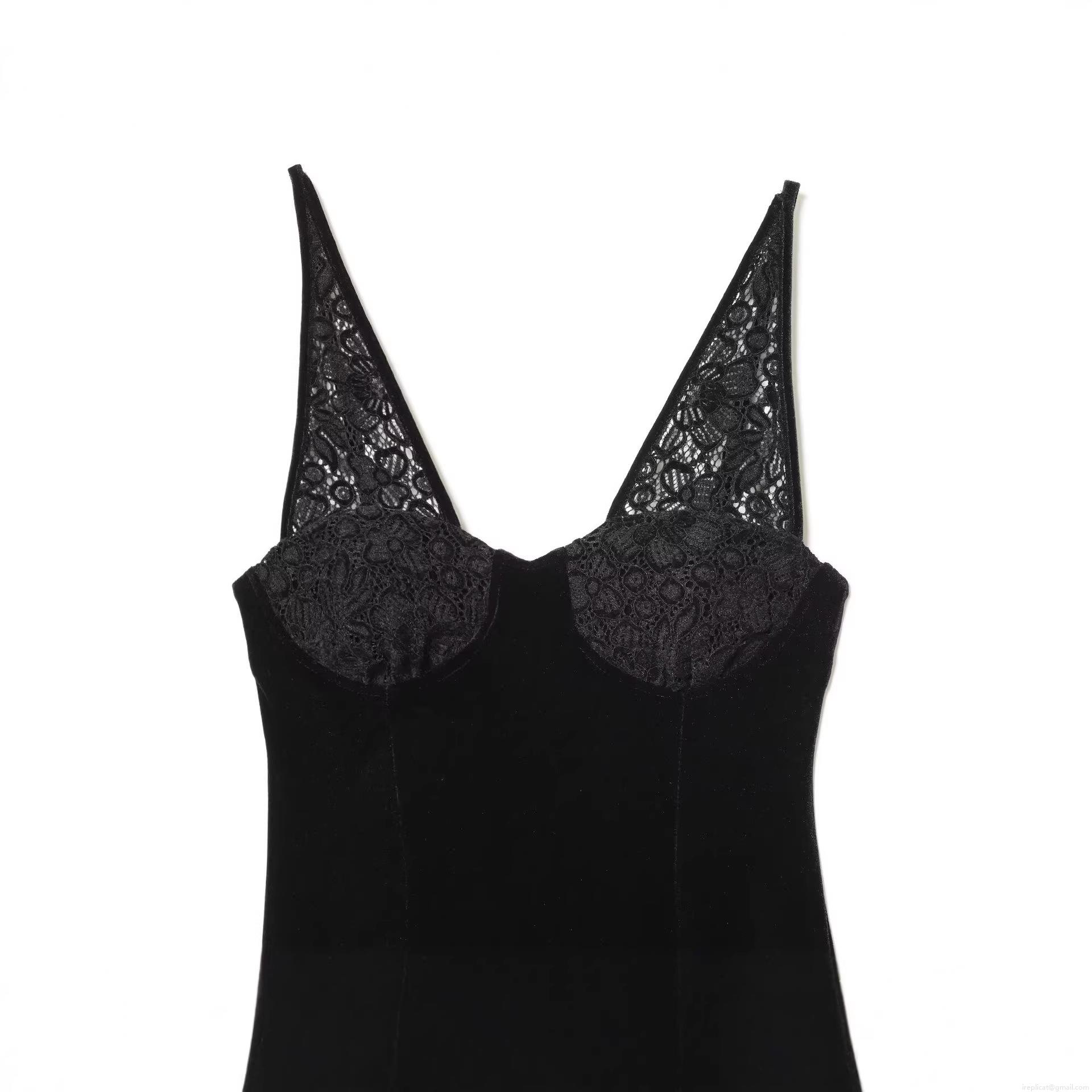 Women's Sexy Backless Velvet Midi Dress With Lace Patchwork V-Neck Camisole Sleeveless A-Line Evening Party Clubwear Dress
