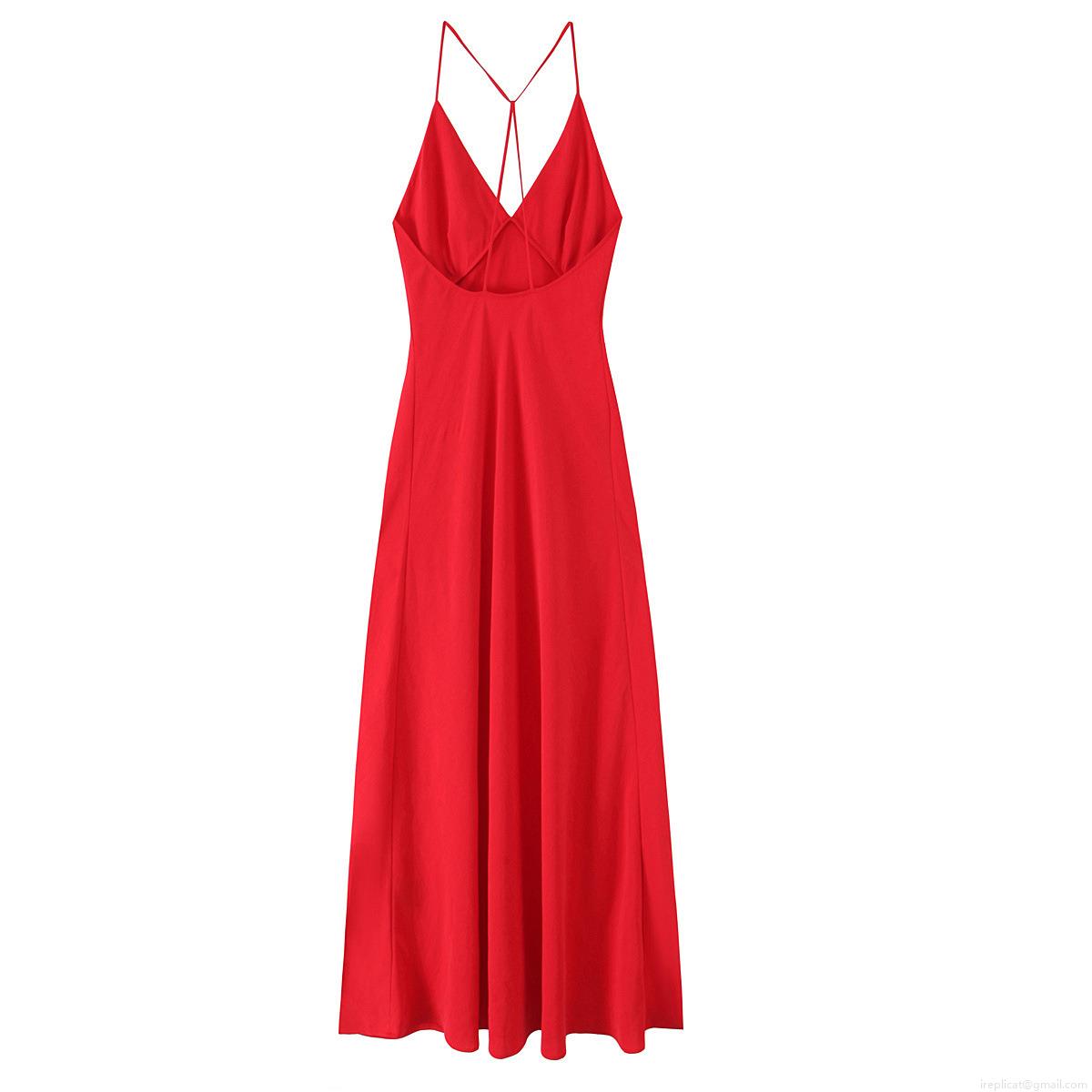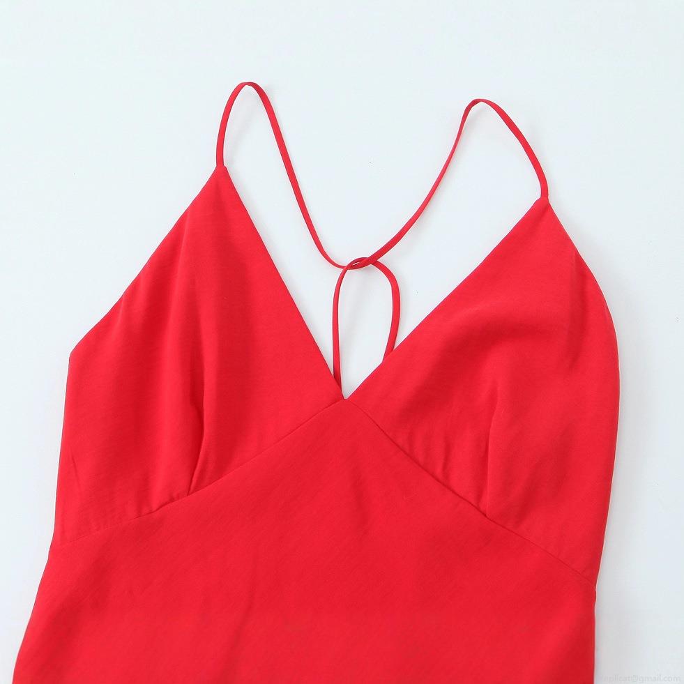 • Women's Sexy Backless V-Neck Midi Slip Dress Summer Solid Color Cross Strap Polyester Party Cocktail Dress For Women