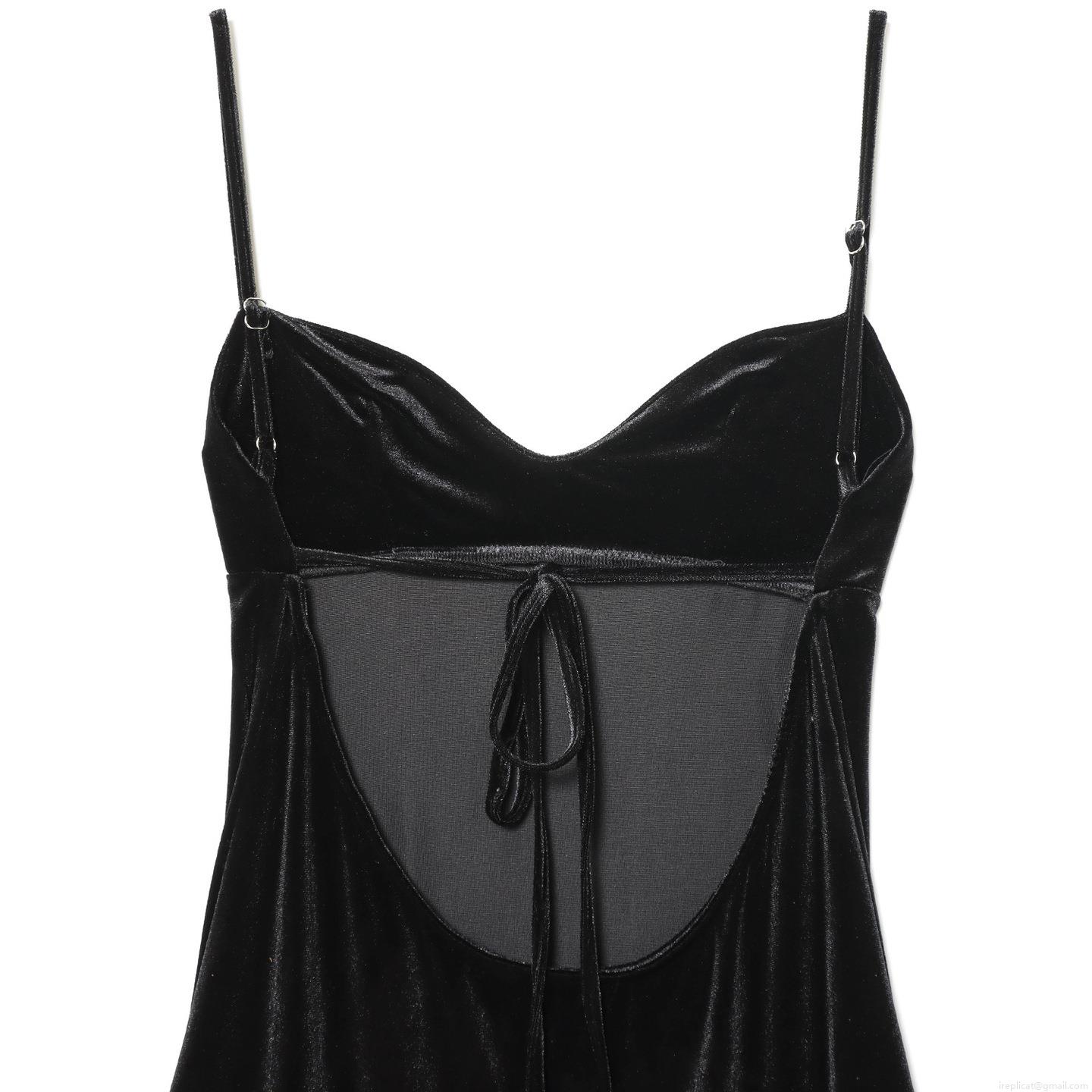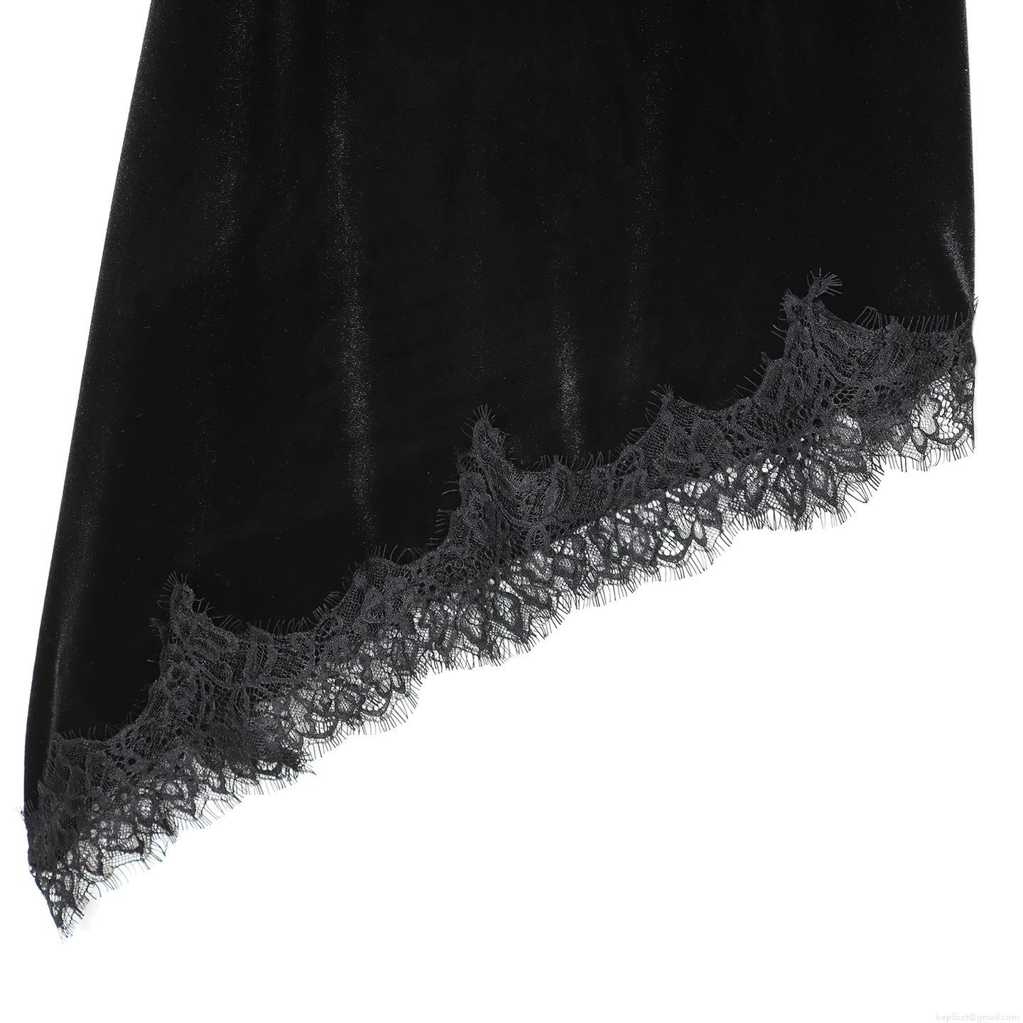 • Women's Sexy Black Velvet Cami Dress With Lace Trim Backless Irregular Hem Midi Evening Party Dress For Nightclub Date Wear