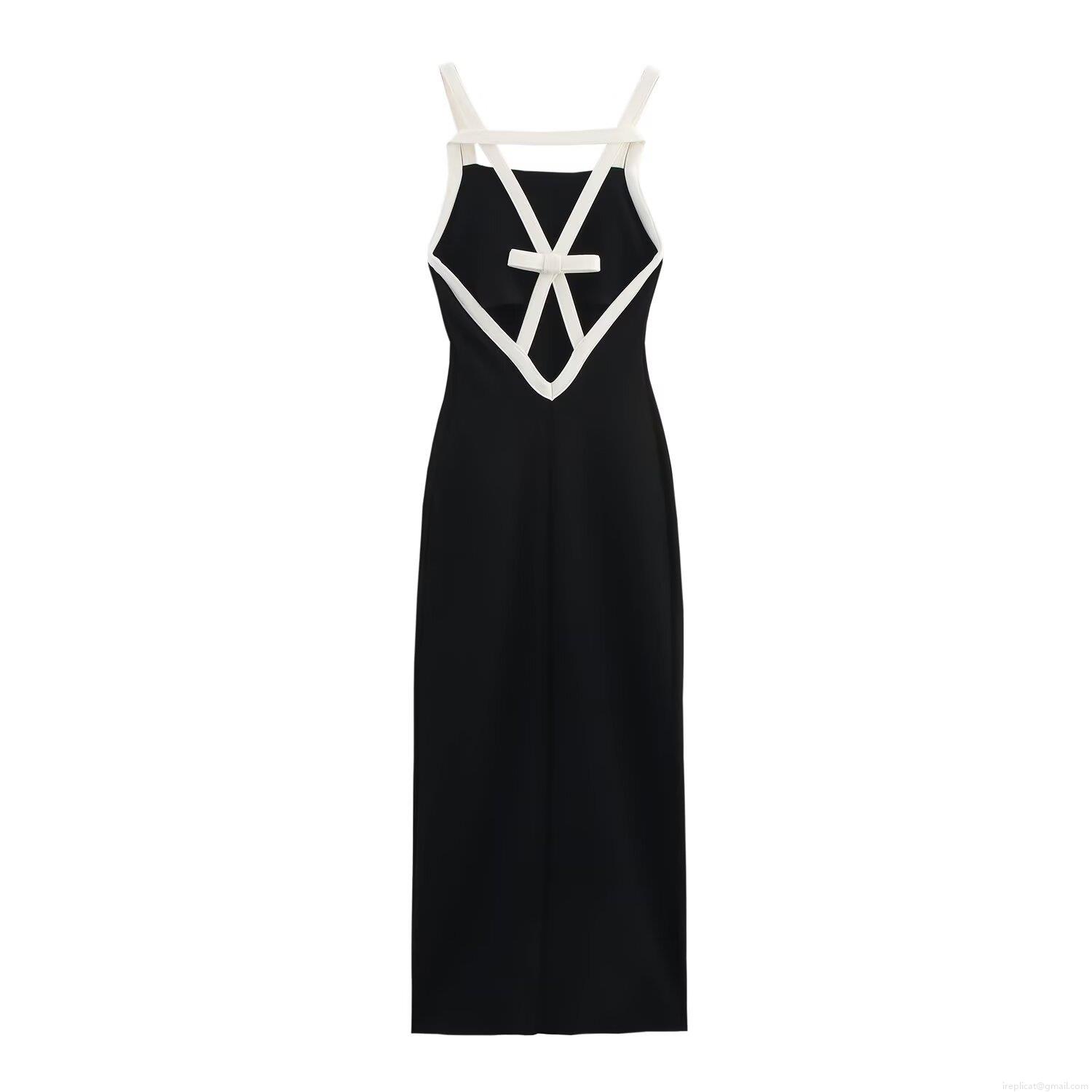 • Women's Sexy Contrast Color Halter Neck Bodycon Midi Dress Fashion Knitted Sleeveless Bow Backless Party Dress For Ladies Summertime