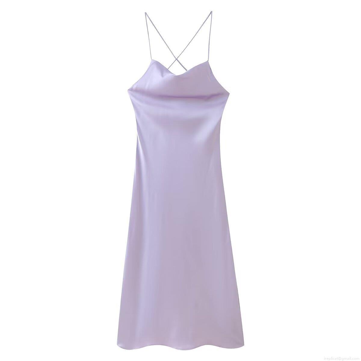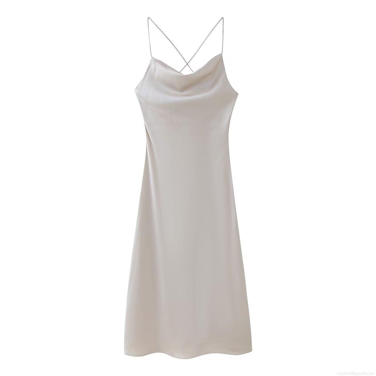 • Women's Sexy Cowl Neck Satin Slip Dress Sleeveless Backless Crossover Straps Midi Dress Evening Party Cocktail Clubwear Bodycon Dress
