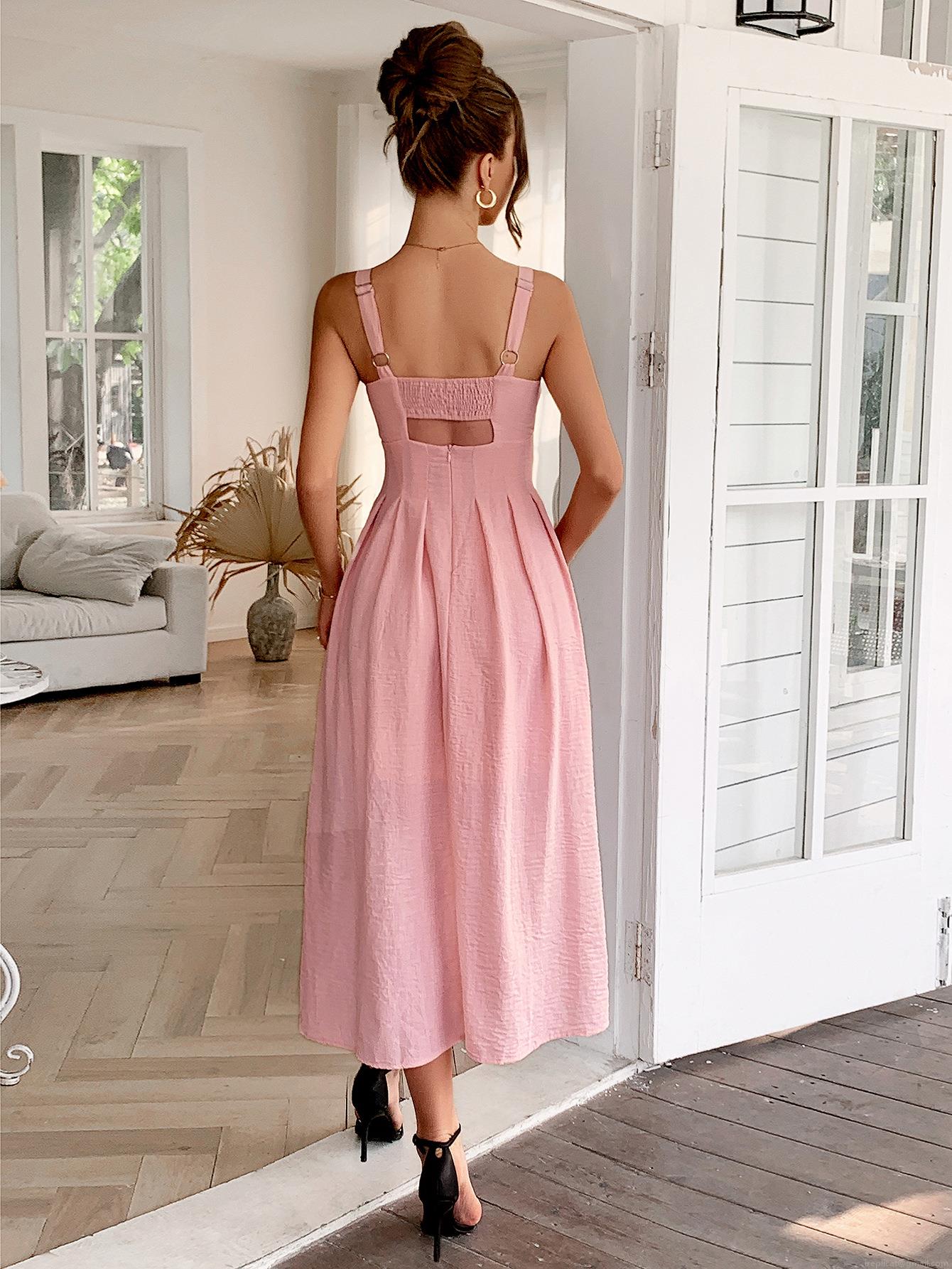 • Women's Sexy Cut Out Spaghetti Strap Midi Dress Elegant Square Neck Pleated A-Line Vacation Sundress Summer Casual Solid Color Backless Dress