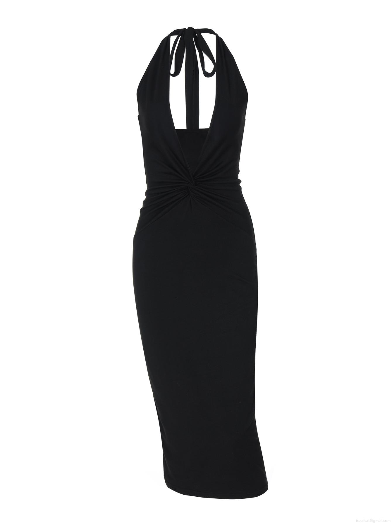 • Women's Sexy Deep V Neck Halter Midi Dress Sleeveless Backless Knot Front Bodycon Party Club Dress Solid Color Polyester Spandex Slim Fit Summer